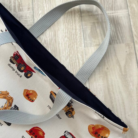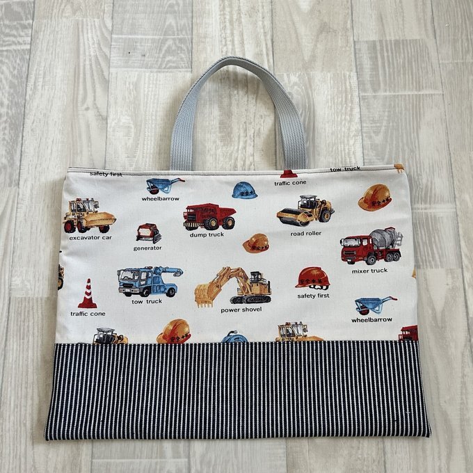 レッスンバッグ 働く車 ホワイト ヒッコリーデニム 裏地11号帆布 ハンドメイド