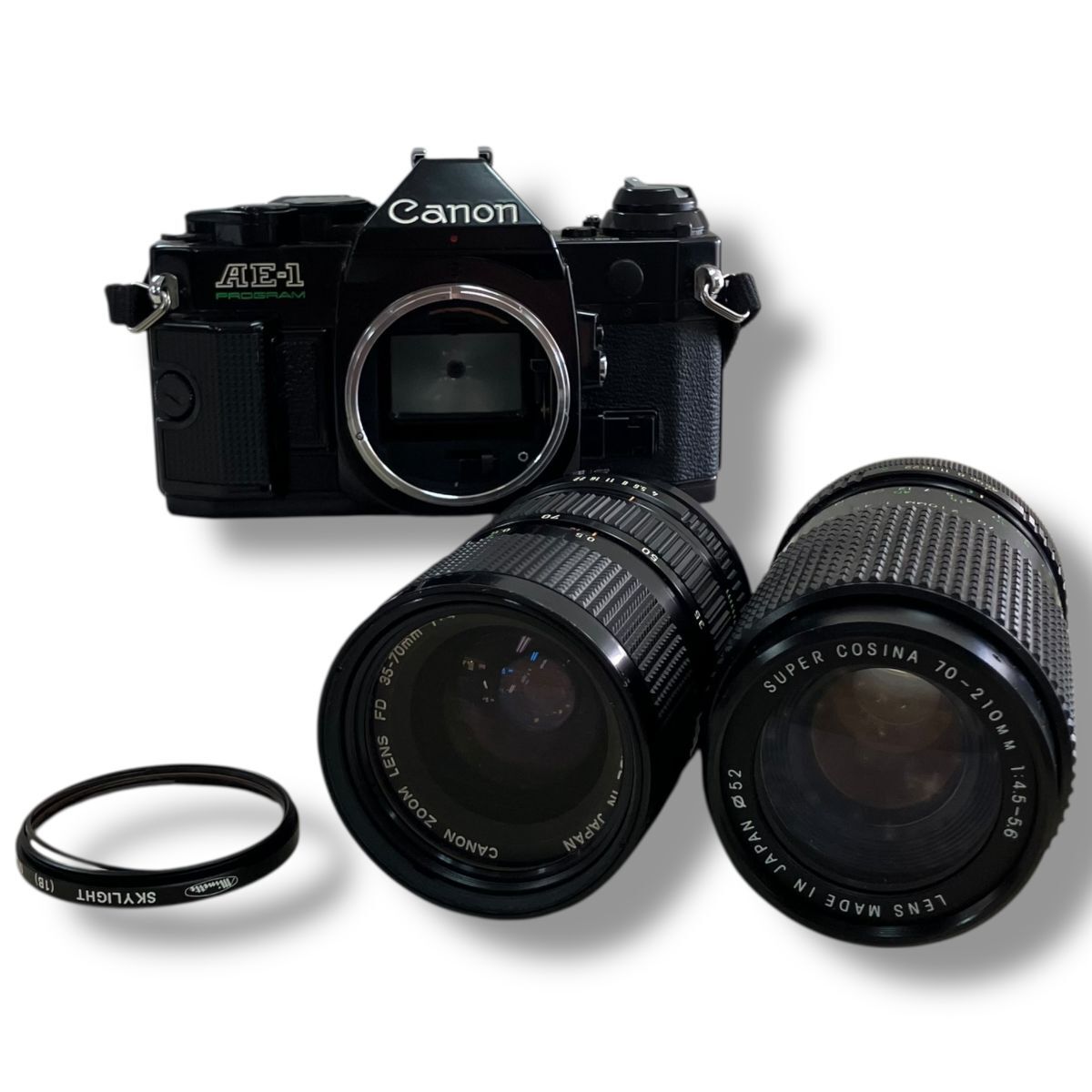 [60]251023-35-853 UT800 Canon AE-1 PROGRAM ブラック F4 35-70mm /F4.5-5.6 70-210mm 一眼レフ カメラ キャノン ジャンク 現状品