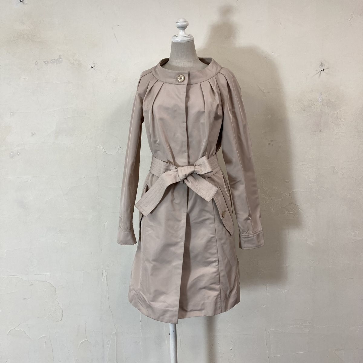 2O3357-Y◆MAX&Co. マックスアンドコー バンドカラーコート 膝上 比翼ボタン ベルトリボン タック レディース ◆sizeJ38 ベージュ ポリ