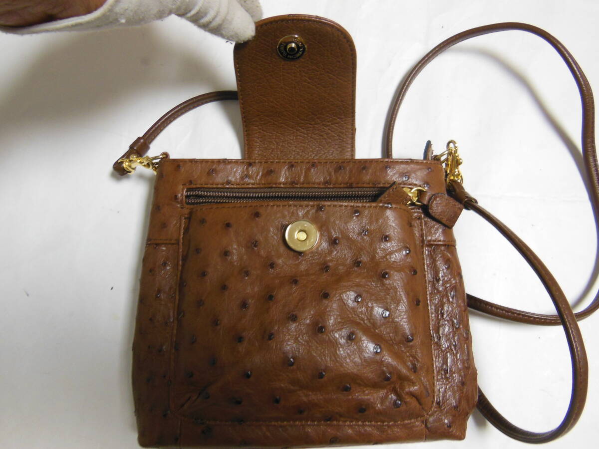 未使用品 高級エキゾチックレザーパーティーバッグ・ショルダバッグ・2WAY オーストリッチ革 ブラウン 送料無料