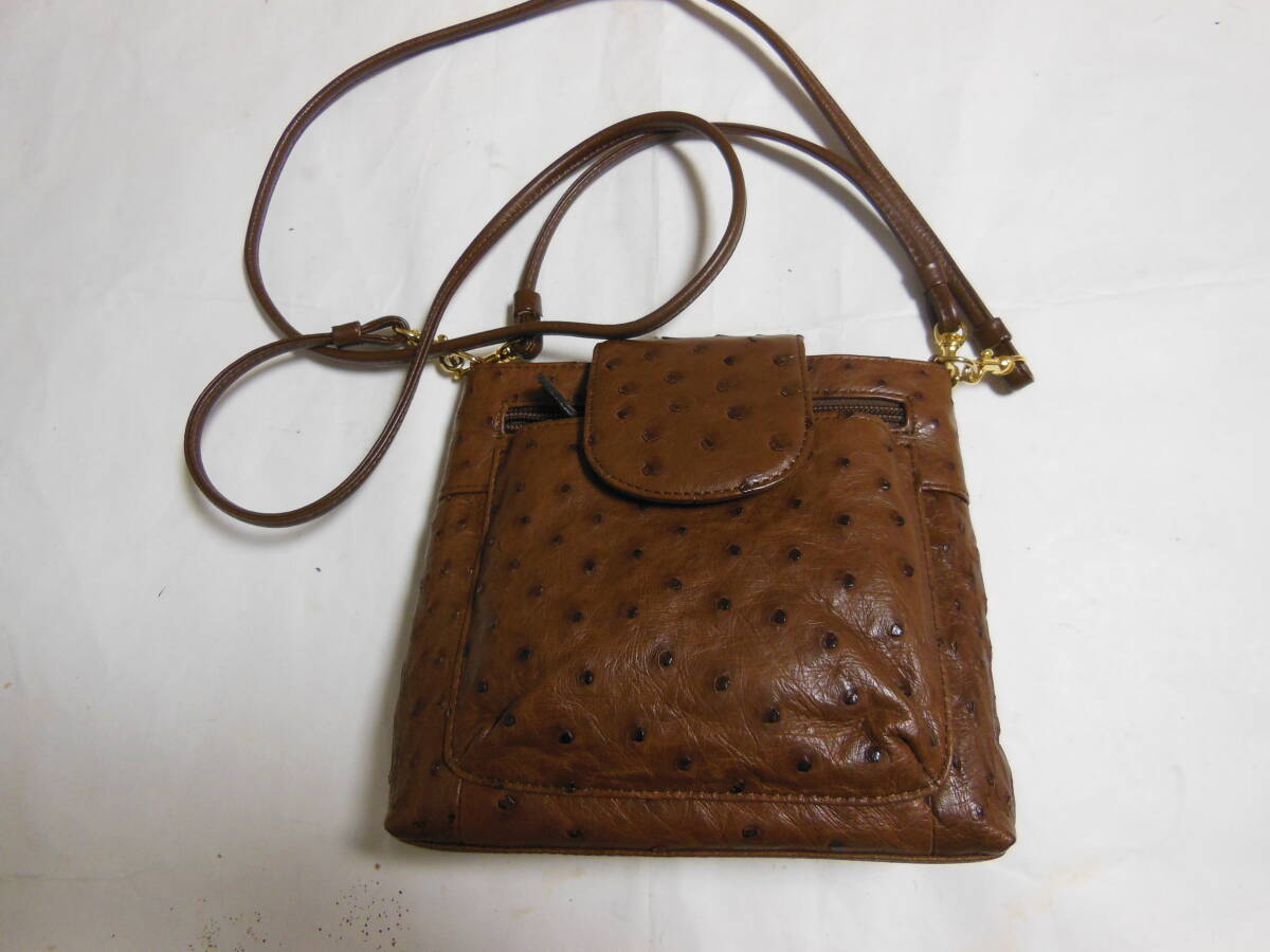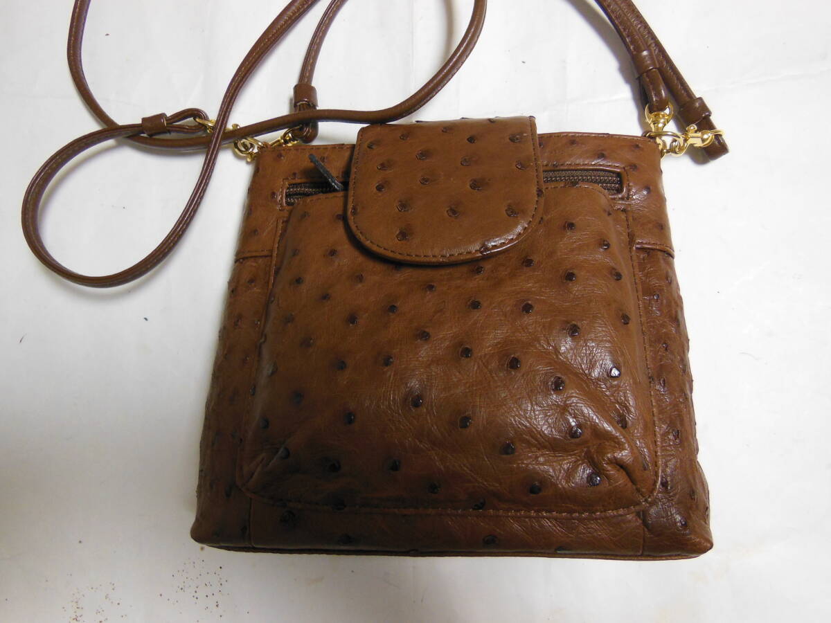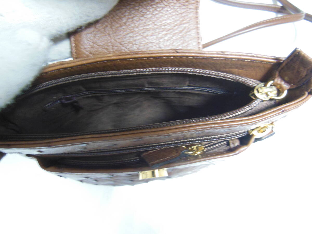 未使用品 高級エキゾチックレザーパーティーバッグ・ショルダバッグ・2WAY オーストリッチ革 ブラウン 送料無料
