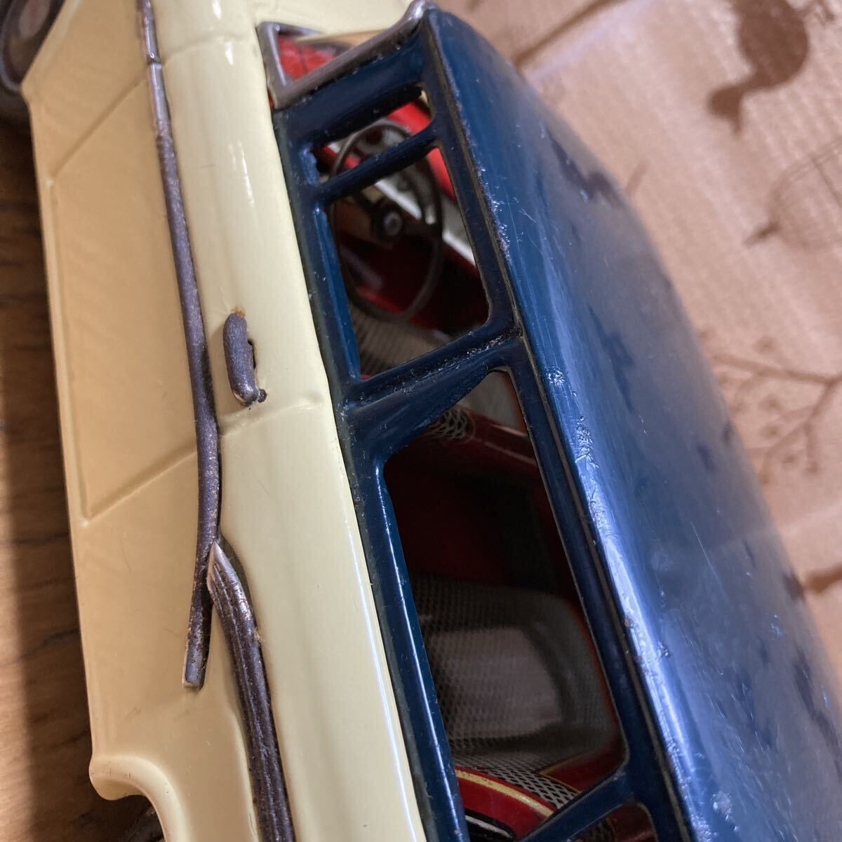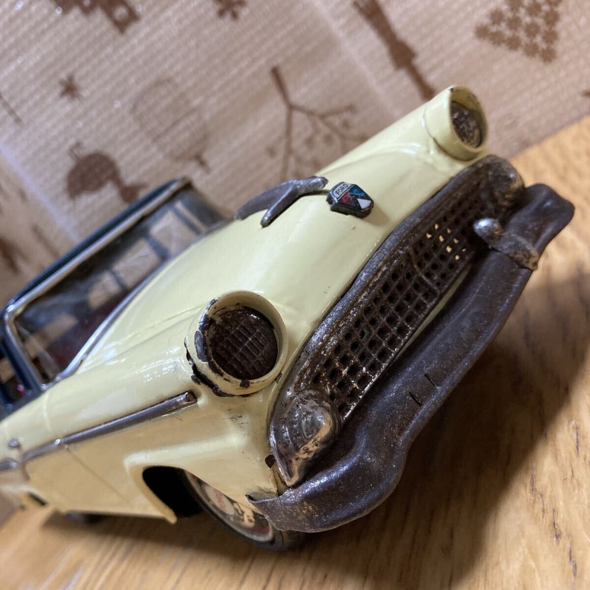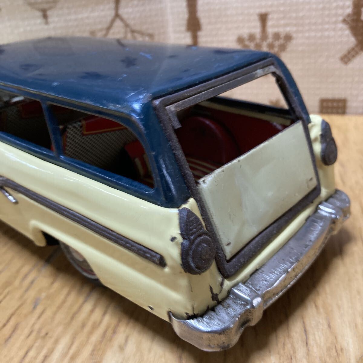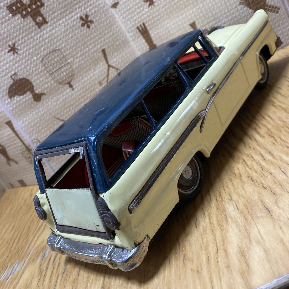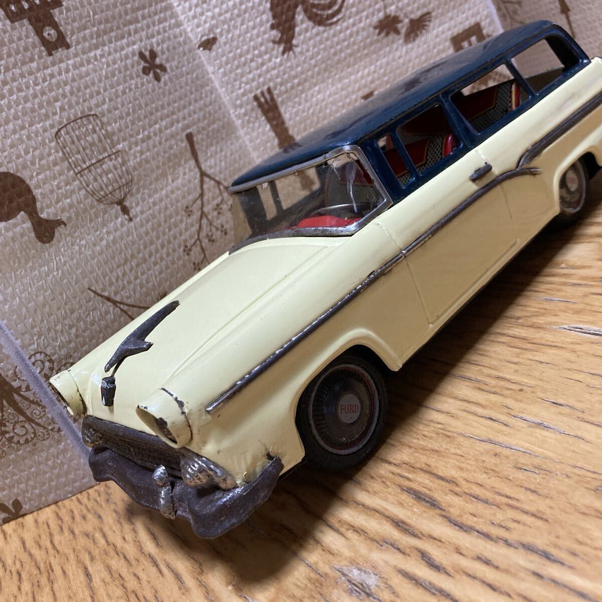 萬代屋 BCバンダイ フォードステーションワゴン です。状態は、写真を良くご覧ください。フリクションは空転して効きません。タイヤ・ホイールキャップは全輪、揃っています。フロントグラスは欠けがあるものの、残っています。リアの方は欠損しています。全長:約30センチ、全幅:約11センチなお、出張が多いため、発送が遅れる場合があります。予めご了承ください。