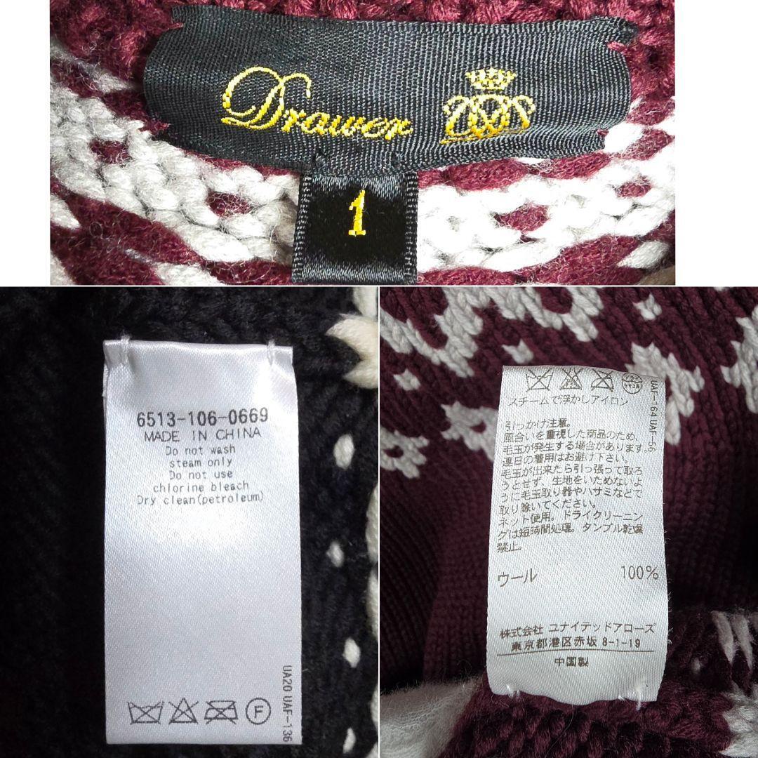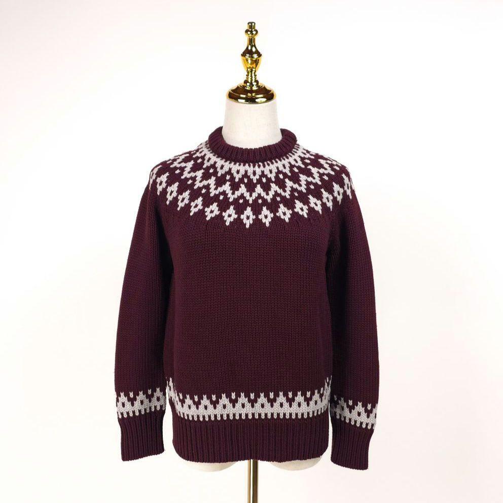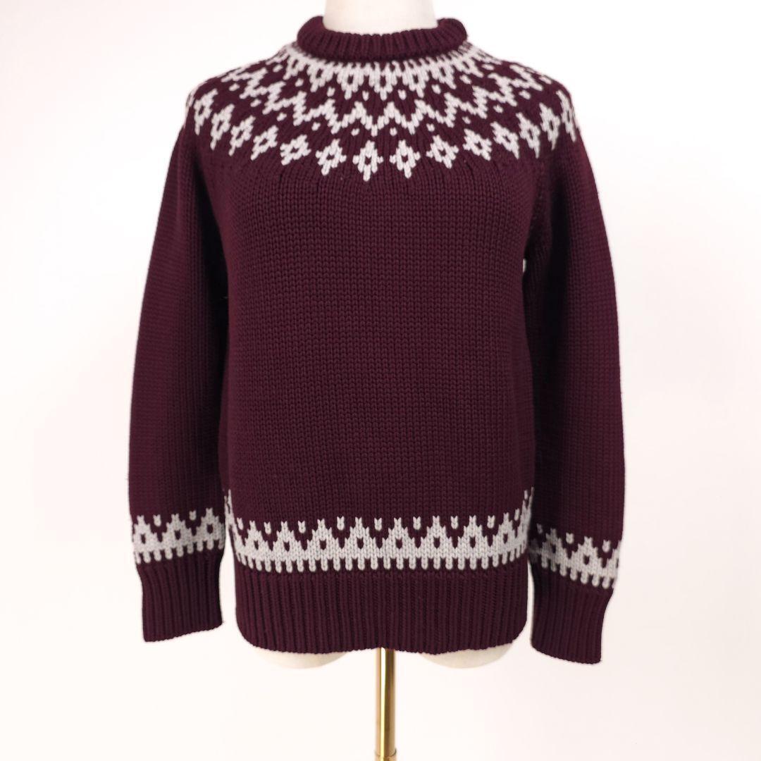 【新品同様】ドゥロワー ウール ノルディック柄 クルーネック ニット ボルドー Drawer 1