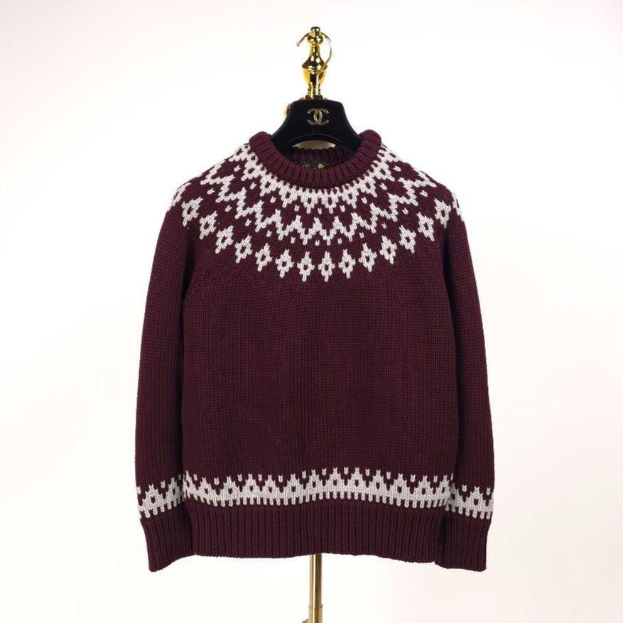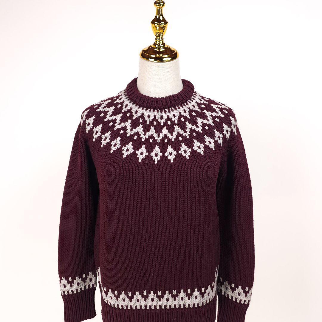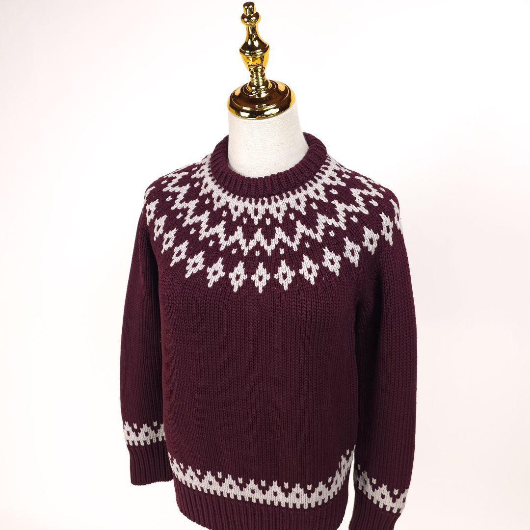 【新品同様】ドゥロワー ウール ノルディック柄 クルーネック ニット ボルドー Drawer 1