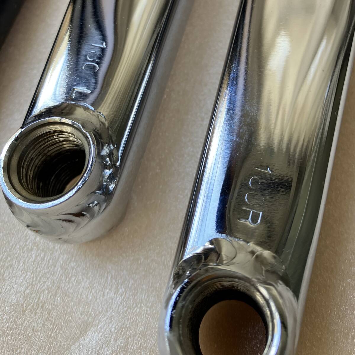 SE BIKES PK RIPPER LOOPTAILから外したクランクです。クランク長は180ミリです。メッキも美しいです。箱は他のSEのクランクが入っていたものを流用しています。付属するスピンドルは8スプライン、長さは150ミリ、直径19ミリのものになります。測定器具は商品に含みません。紹介画像よりご判断ください。ご検討どうぞよろしくお願いいたします。