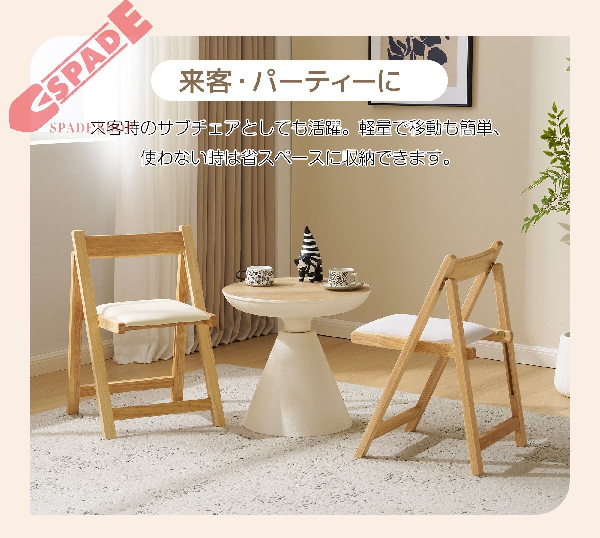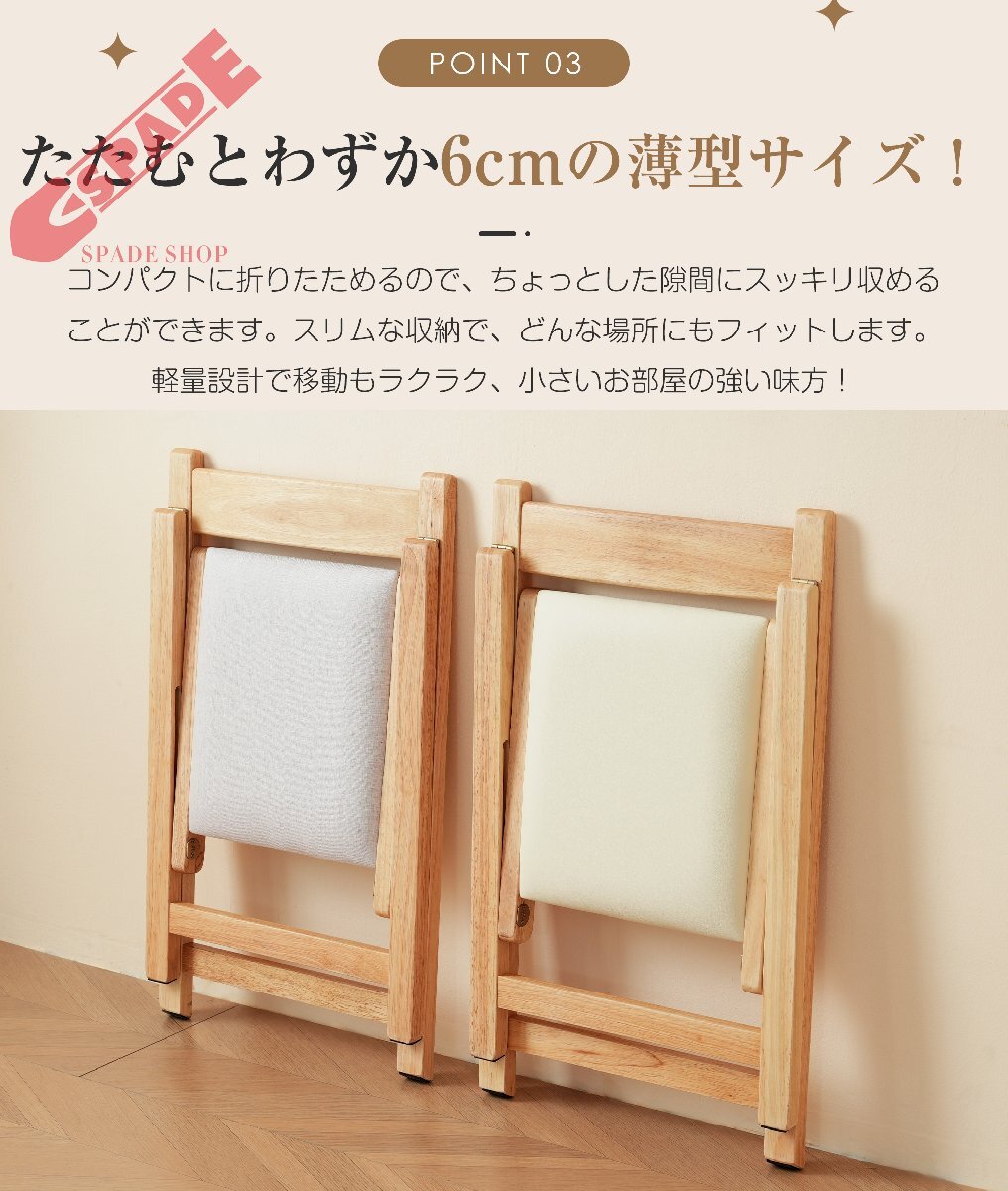 • 【使いやすい折り畳めるタイプ】使わない時は折りたたんで収納できる便利な折りたたみチェアです。コンパクトに折りたためるので、ちょっとした隙間にスッキリ収めることができます。スリムな収納で、どんな場所にもフィットします。軽量設計で移動もラクラク、小さいお部屋の強い味方!