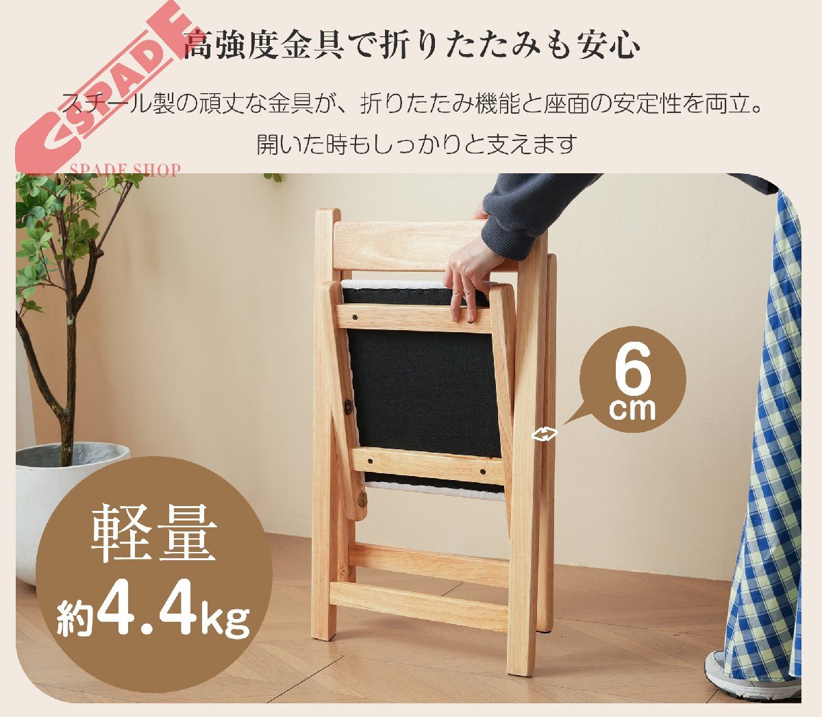 • 【高強度金具で折りたたみも安心】スチール製の頑丈な金具が、折りたたみ機能と座面の安定性を両立。開いた時もしっかりと支えます