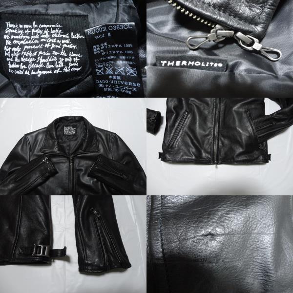 毎年、多くのレザージャケットのモデルを発売するナノユニバースですが、やや厚手の上質な牛革に、中綿サーモライト仕様の上級モデルで、人気の黒に、人気のMサイズでもあり、あまりオークションなどに出品されるモデルではありませんので、お探しの方や、好みの方にはオススメです。