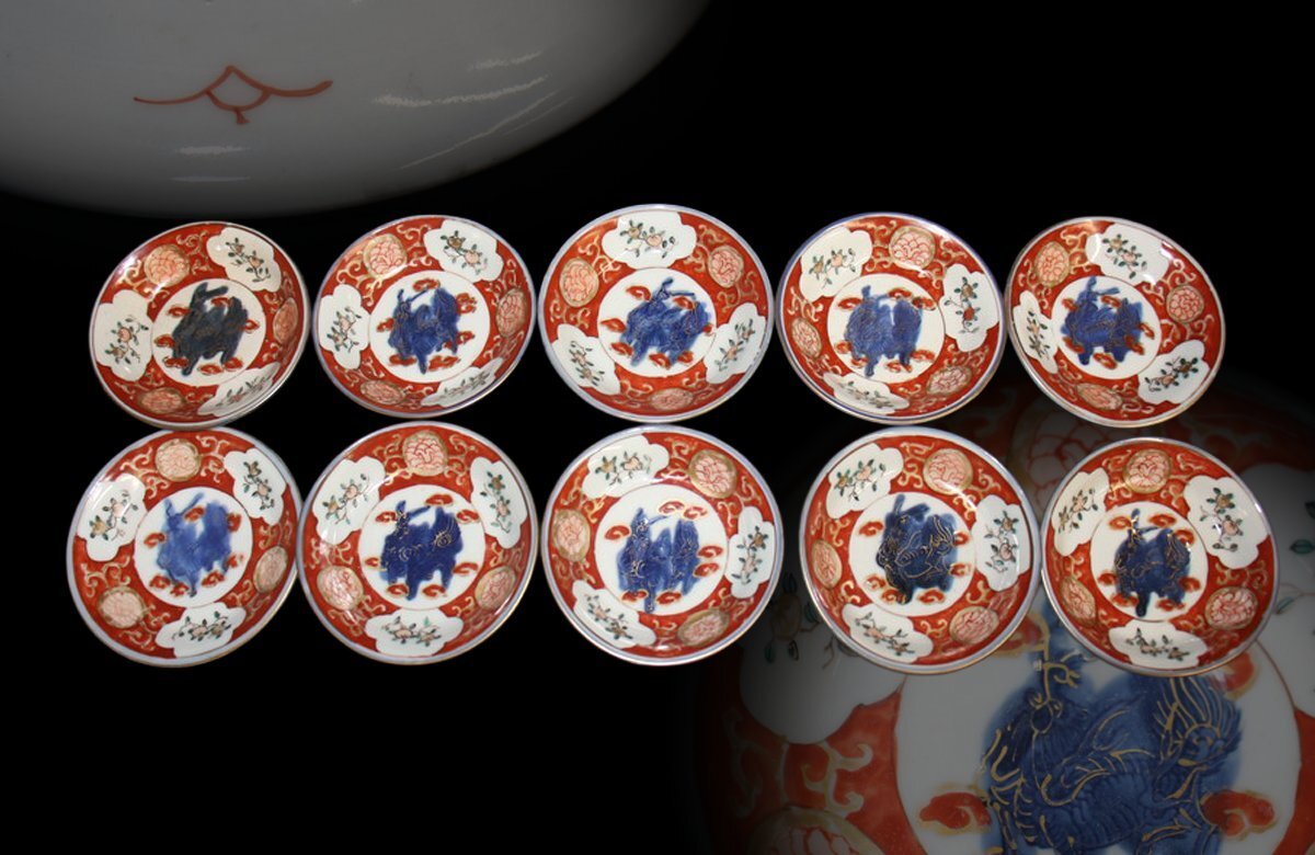 | 商品名 | 【江】伊万里 色絵金彩花実唐草獅子文銘々皿 10客 直径10.8㎝ 古美術品(小皿向付懐石料理道具)AX1685 CTDByoii |
