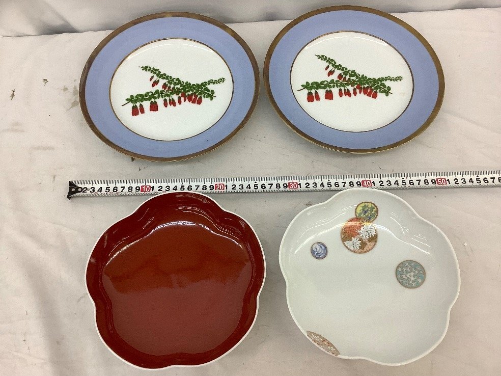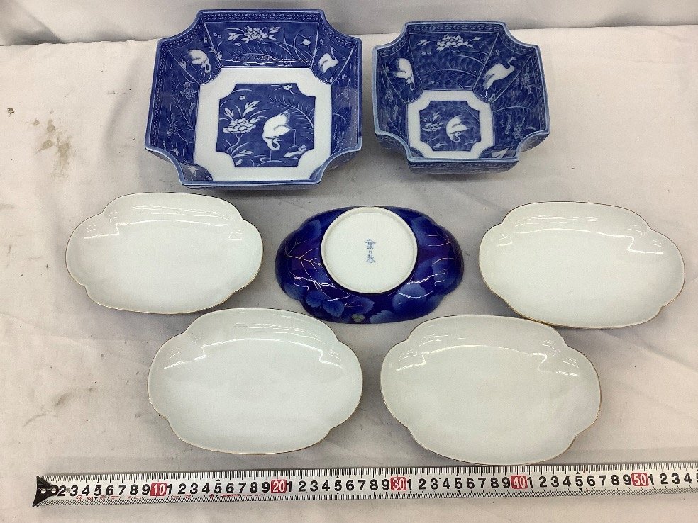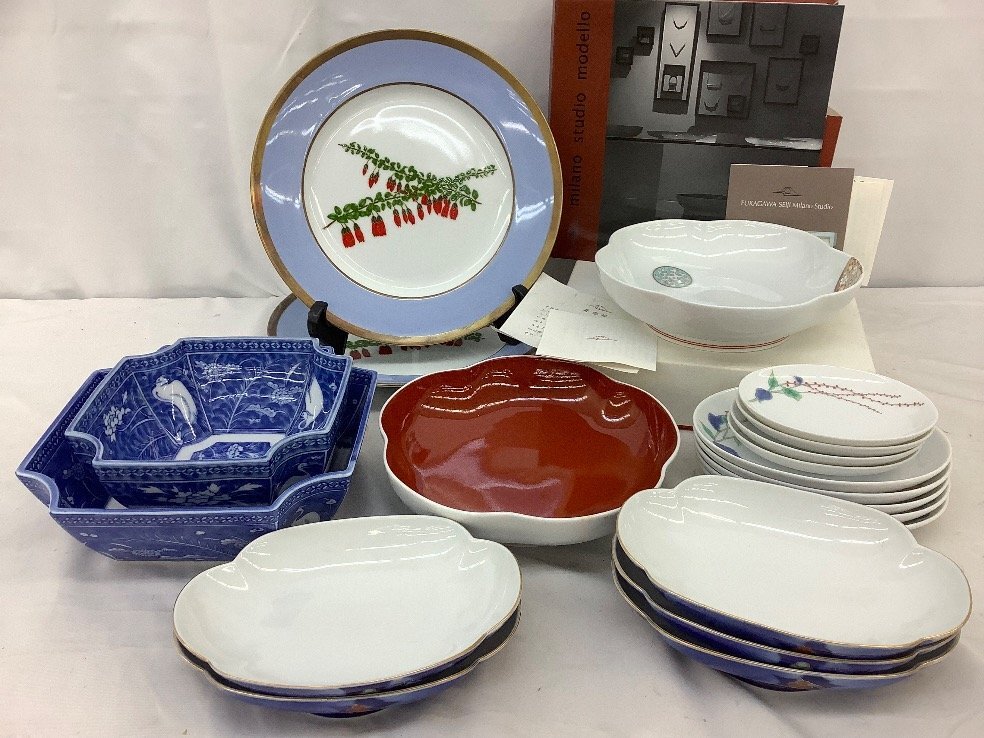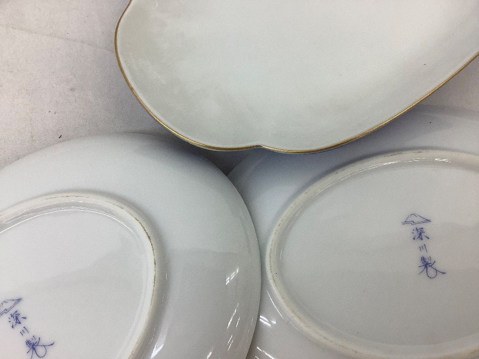 深川製磁 陶器まとめ/寿赤絵梅型鉢/水引草楕円皿/鷺深鉢/君島一郎他 皿立ては備品/未使用含む/ACB 中古品