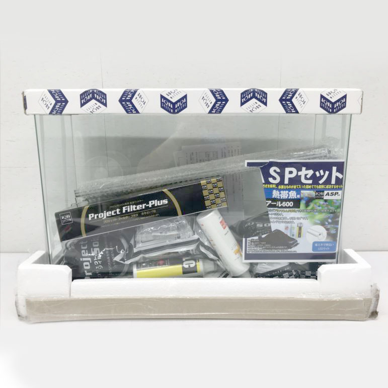 【商品特長】 ◆まったく新しい飼育方法ASP方式 ASP方式は、失敗なく「アクアリウムが成功」できる画期的な飼育方法です。 すぐに飼育がスタートでき、水替え不要でピカピカの水を維持し、手間いらずです。 ◆飼育に必要なもの全て入っています 水槽やろ過システムだけでなく、ヒーターやエサまで入っていますので、買い足しなしで飼育できます。 【セット内容】 水槽:アートルノアール600、(ガラスフタ、フタ受け、保護マット)、 照明:アクシーLED、ろ過材:プロジェクトソイル、フィルター:プロジェクトフィルター、 保温器具:オートヒーター、水温計:小型水温計、フード:プロジェクトフードミニ 5g、、 カルキ抜き:CLC250ml、無料サービス(ミネラルバランス 250ml、バイオバランス 試供品) | |||||||||
