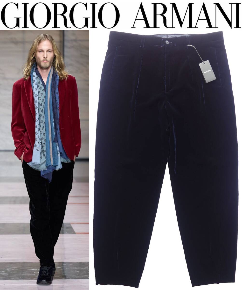秋冬物新品187,000円GIORGIO ARMANIアルマーニ★ミラノコレクション濃紺ベルベット膝下テーパードのデザインパンツ【46=31インチ】