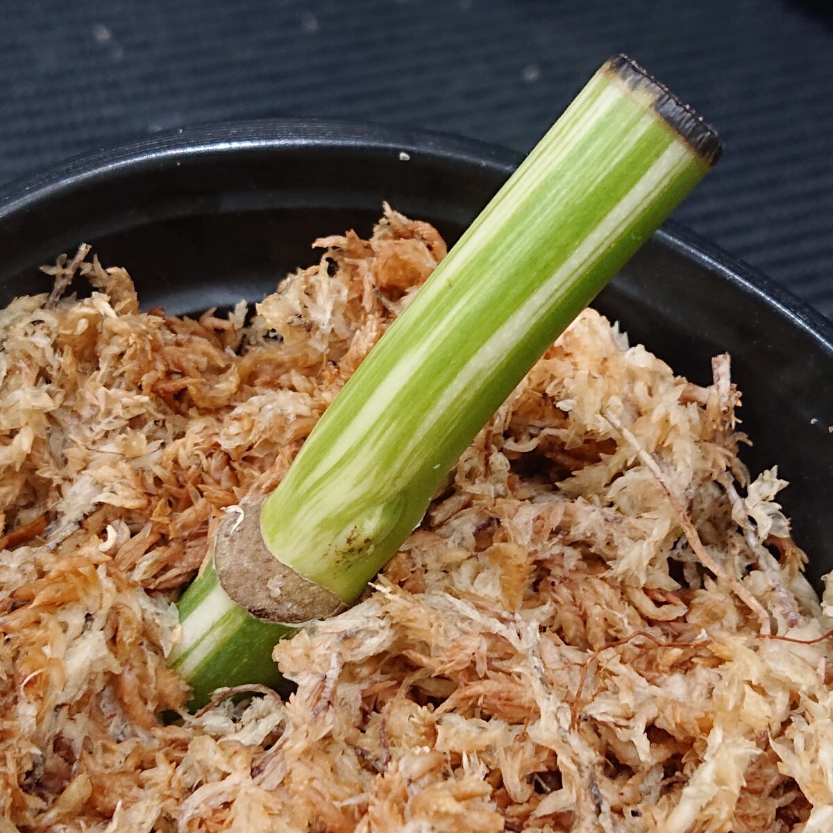 33 脇芽グングン成長中♪ 発根済み! 極上♪ 斑入り モンステラ ホワイトタイガー 極斑入り ハーフムーン 散り斑 茎伏せ