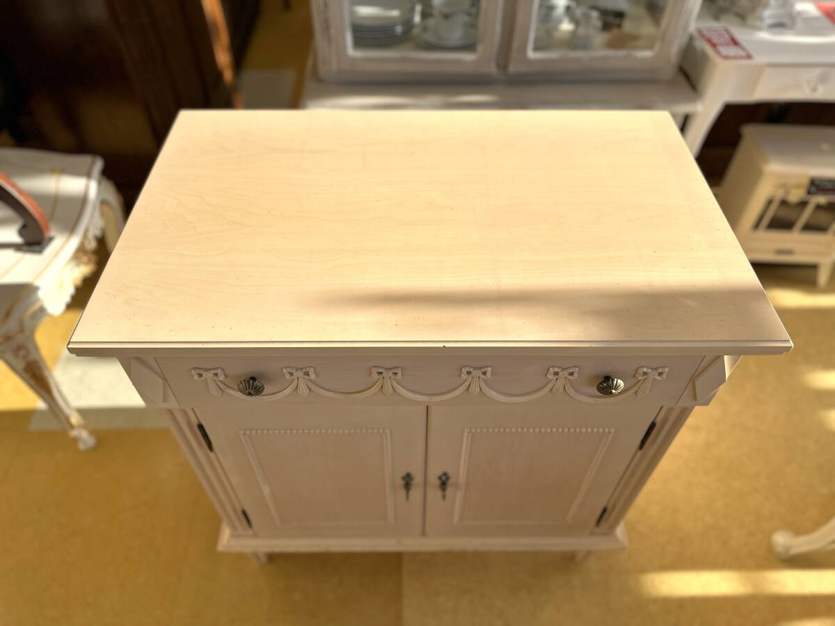 やわらかなクリームカラーと優雅な装飾が魅力の、 リンホーリンミドルキャビネットです。 穏やかな色味が空間に明るさを添え、クラシックな曲線と 繊細なディテールが上品な雰囲気を演出します。 程よい高さのミドルサイズは扱いやすく、 リビングやベッドルームにもすっと馴染む万能さ。 扉内には日用品や小物類をすっきりと収納でき、 天板は花器やオブジェなどを飾るディスプレイスペースとしても映えます。 クリーム色の家具ならではの柔らかい存在感が、 お部屋を優しく、エレガントにまとめてくれる一台。 クラシカルテイストやフレンチインテリアがお好きな方に特におすすめです。 【商品状態】 打痕や、装飾の剥がれがありますので写真にてご確認下さい。 お使いいただく上で問題となるダメージはありません。 棚板は高さ調整可能です。 【商品詳細】 サイズ: W 760 D 460 H 800 【発送】 アートセッティングデリバリーでの発送となります。 サイズランク: Cランク -=--=-=-=-=-=-=-=-=-=-=-=-=-=-=-=-=-=-=-=-=-=-=-=-=-=-=-=-= 【取引詳細】 ・落札後のキャンセルはお受けできません。 ・支払いはヤフーかんたん決済のみとなります。 ・配達日、時間のご指定がある場合は落札後、お支払い前にご連絡下さい。 地域によっては時間指定ができない場合もございますのでご了承下さい。 配達日時のご指定のない場合は最短での配達となります。 大きなサイズの商品については予め搬入経路のご確認をお願い致します。 吊り上げ等の作業が必要な場合はお客様のご負担となります。 ・返品はお受けできません。 ・中古品の為、欠損やダメージの見落とし等ある場合がございます。 写真に載っていない・説明に書いていないなどの理由での返品も原則応じかねます。ご理解頂いた上でのご入札をお願い致します。 ・商品について気になる事がありましたら、お気軽にご質問下さい。 ・即決、値引きについての質問にはお答えできません。 ・オークションの取消 出品中の商品は店頭販売も行っております。 店頭で販売された商品については取消、取引のキャンセルを 行う場合がございますので予めご了承下さいませ。 ■■■お願い■■■ ・落札後、24時間以内にご連絡お願い致します。 ・直接のお引取ご希望の場合はその旨ご連絡下さい。 ・ヤフオク仕様変更により、こちらからお客様お電話番号が見えなくなっております。 アート依頼時に必須になりますのでお客様のお電話番号をお知らせ下さいませ。 ■■■発送方法■■■ ・送料は元払いで発送致します。 ・送料は落札者様負担となります。 *上記の内容をご理解頂き納得の上 入札をお願い致します。 -=--=-=-=-=-=-=-=-=-=-=-=-=-=-=-=-=-=-=-=-=-=-=-=-=-=-=-=-= アンティーク家具や雑貨を取り扱っている店舗より出品をしております。 ヤフーオークションへの出品は一部商品となっておりますので 機会がございましたら店舗へのご来店をお待ちしております。 静岡県伊東市吉田 142 SNSにて入荷商品や、店内の様子を紹介しております! 下記のアカウントで検索してみてください♪ Instagram:@aston_antiques TikTok:@aston_antiques -=--=-=-=-=-=-=-=-=-=-=-=-=-=-=-=-=-=-=-=-=-=-=-=-=-=-=-=-= ■■■当店ホームページ■■■ https://aston-recycle.jp/ ホームページに店舗のご案内が掲載されていますのでご覧下さい。 | |||