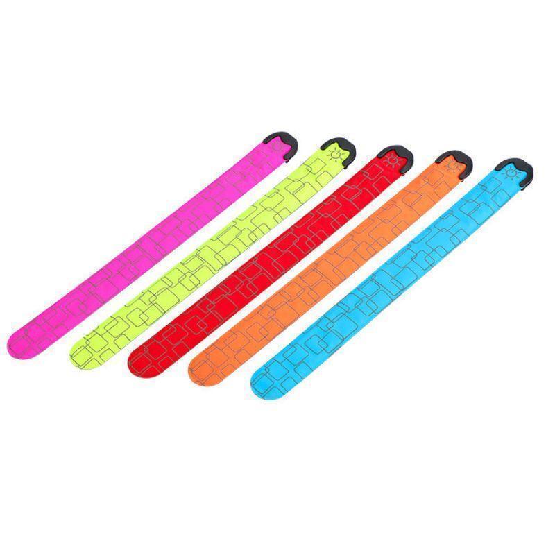 簡単装着: 片手で簡単に装着できるデザイン。本体表面には反射インク、裏面には肌に優しい柔らかい素材を使用。