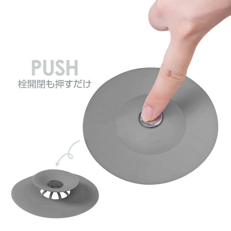 ◆排水口カバー プッシュ開閉 押すだけで栓の開閉を切替 簡単取付 TPRエラストマー 浴室/浴槽/キッチン/シンク/洗面 ドレインストッパー ヘアキャッチャー 2個セット SHC10CS2