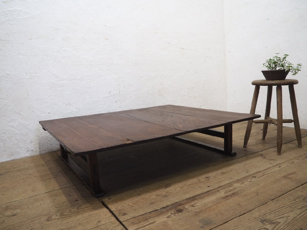 タH0395◆②天板W105,5cm×D91cm◆素朴な杉材の大きい木製ローテーブル◆文机 座卓 ちゃぶ台 陳列台 天然生活 レトロ アンティークM庭