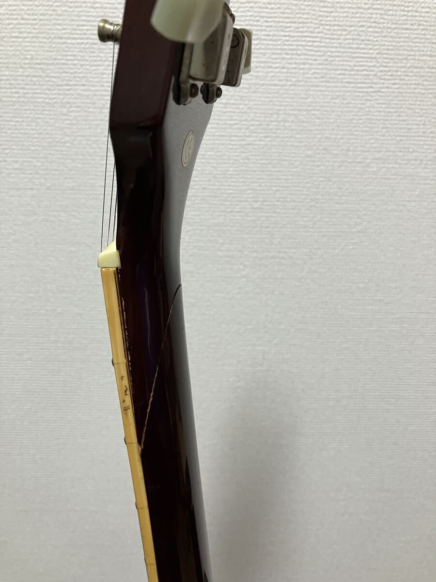 写真にあるようにネックにヒビがあり、バインディングからも離れています。