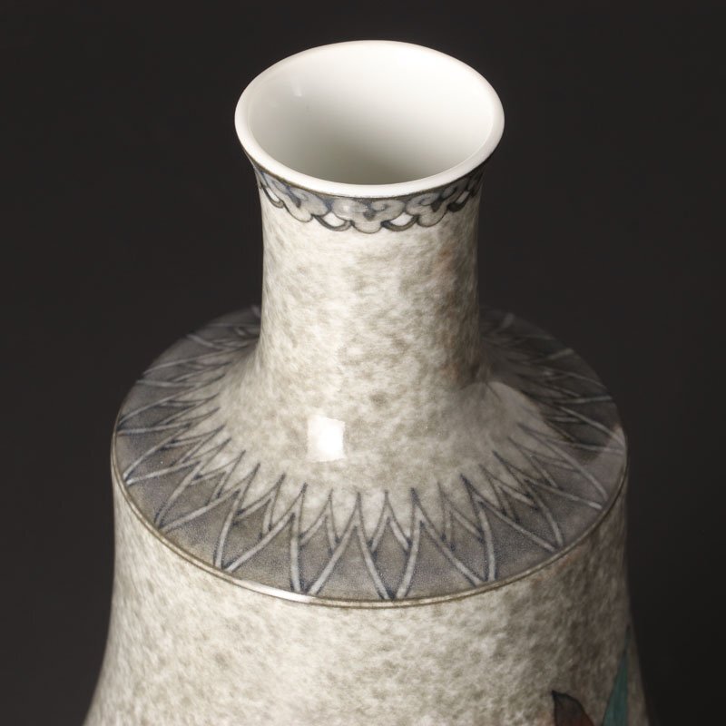 上品なグレーに柘榴文の赤が美しく映える逸品です。 ★商品は十三代今泉今右衛門の作品である事を保証致します。 |