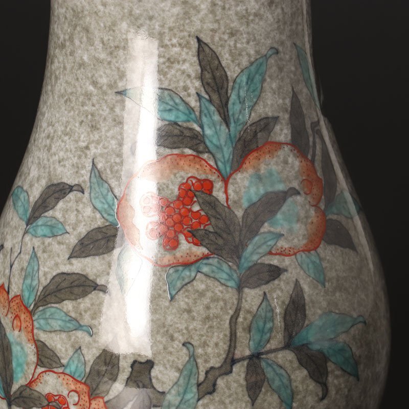 | 【古美味】人間国宝 十三代今泉今右衛門 色絵薄墨柘榴文花瓶 茶道具 保証品 |