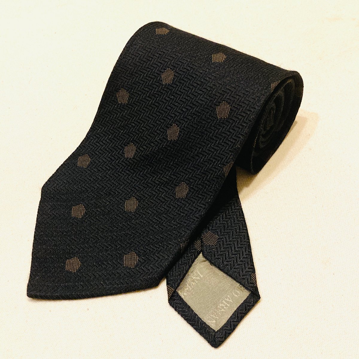 GIORGIO ARMANI CRAVATTE ジョルジオアルマーニ イタリア製 絹 シルク SILK 100% 高級 ネクタイ ブラック系 ドット デザイン