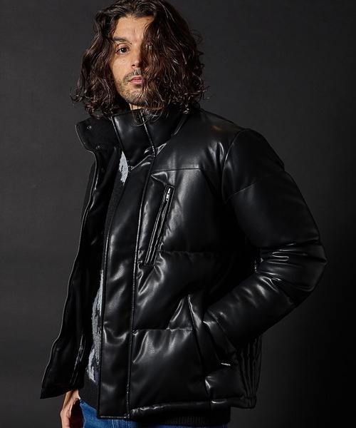 参考商品名:フェイクレザースタンドカラー中綿ブルゾン