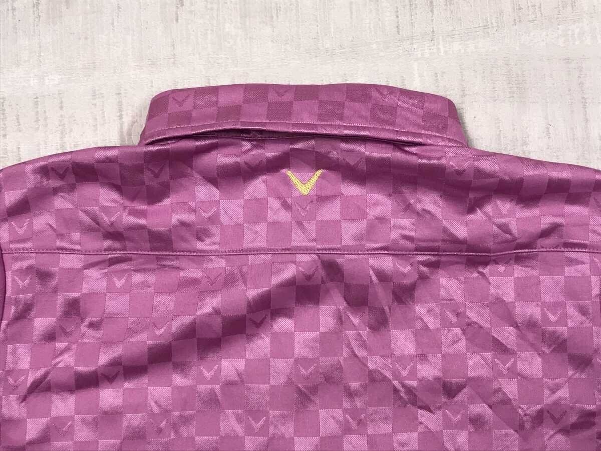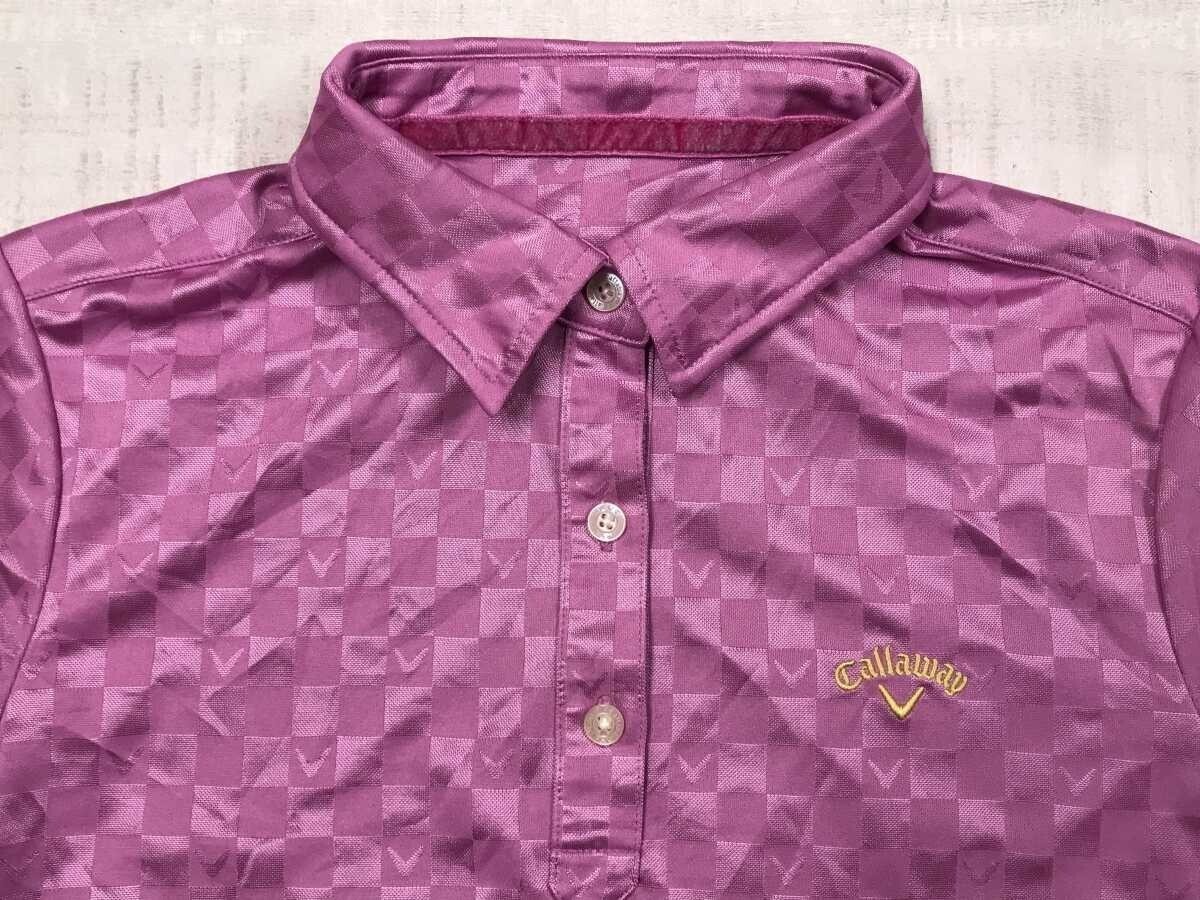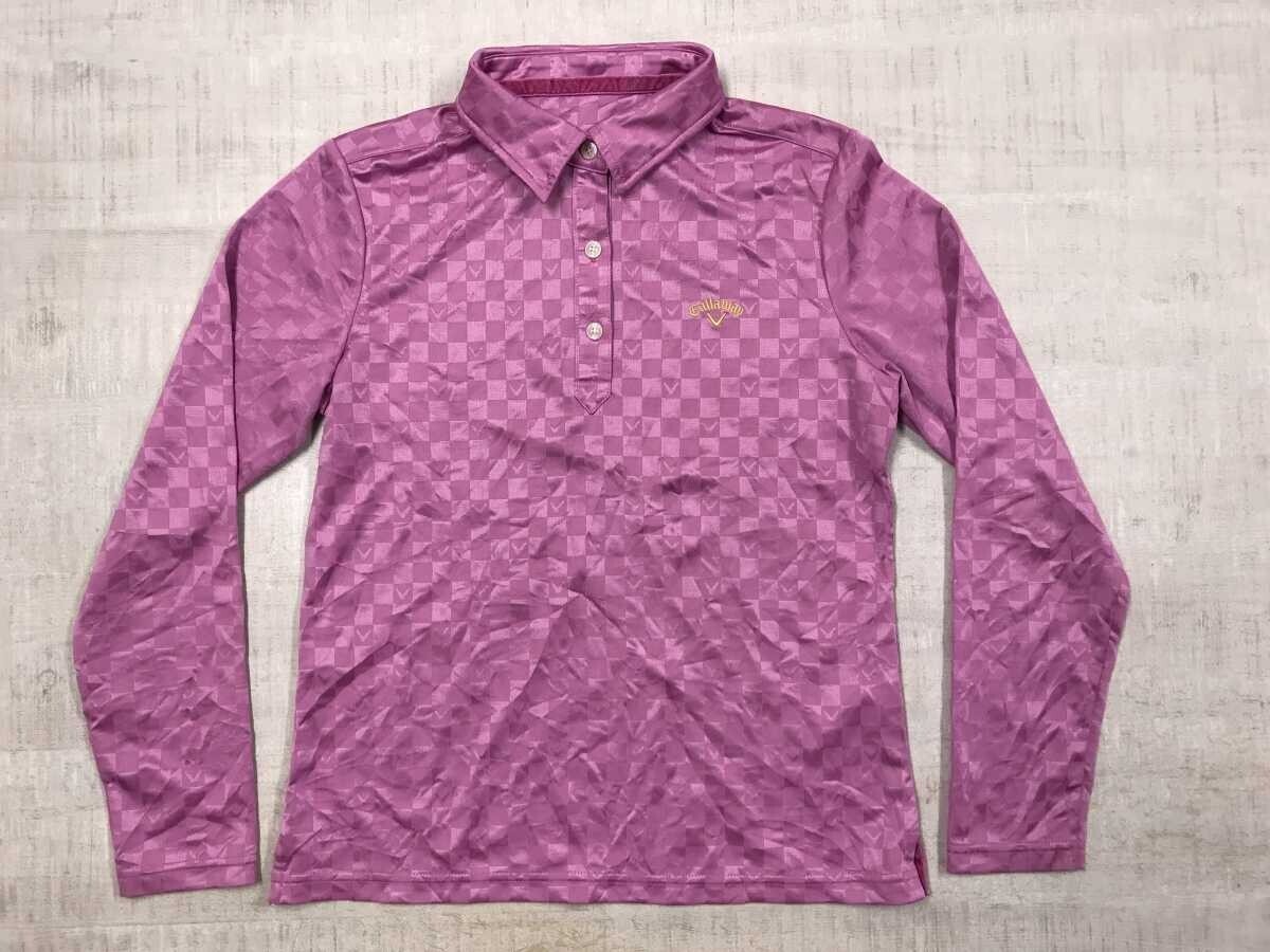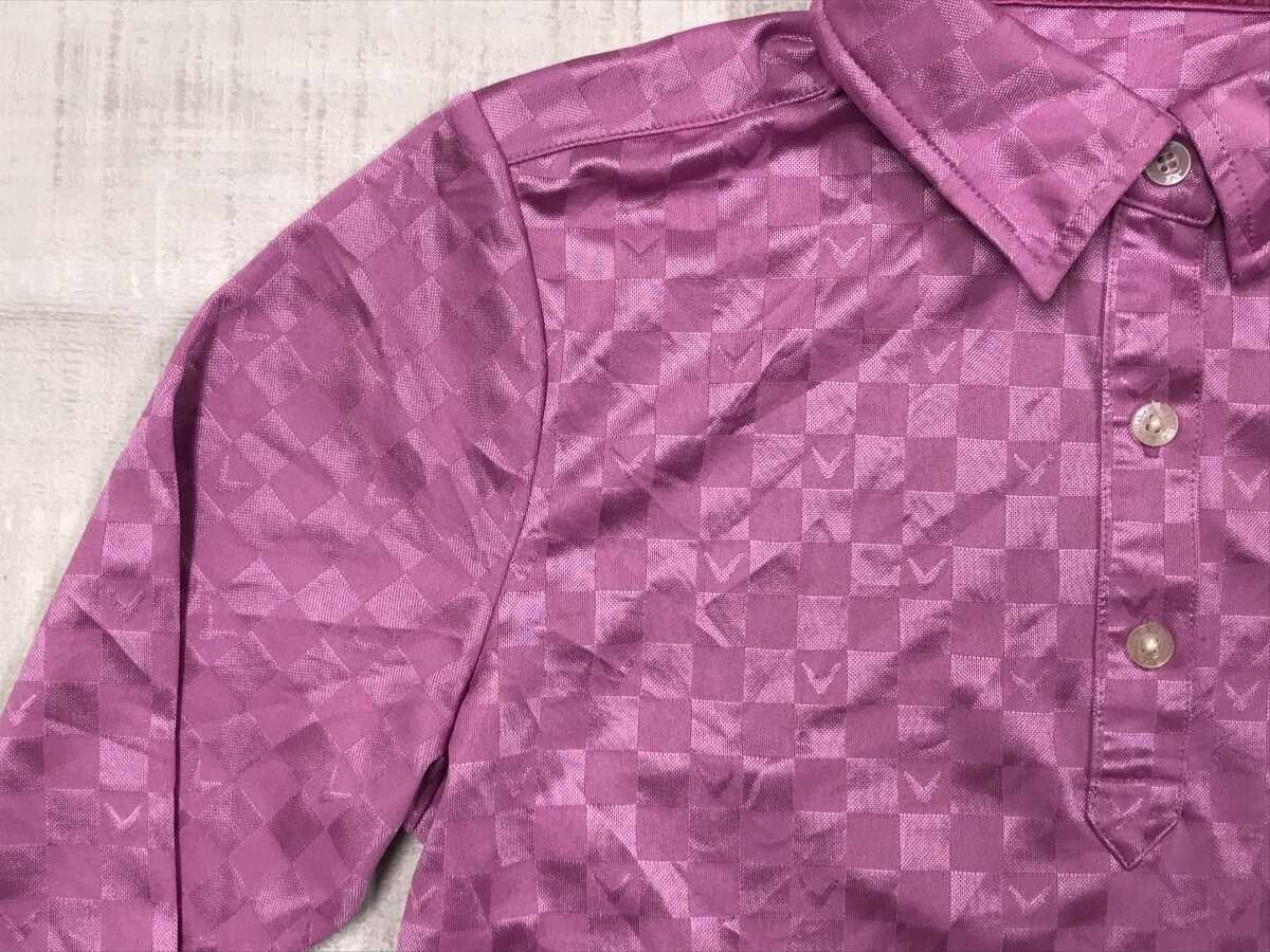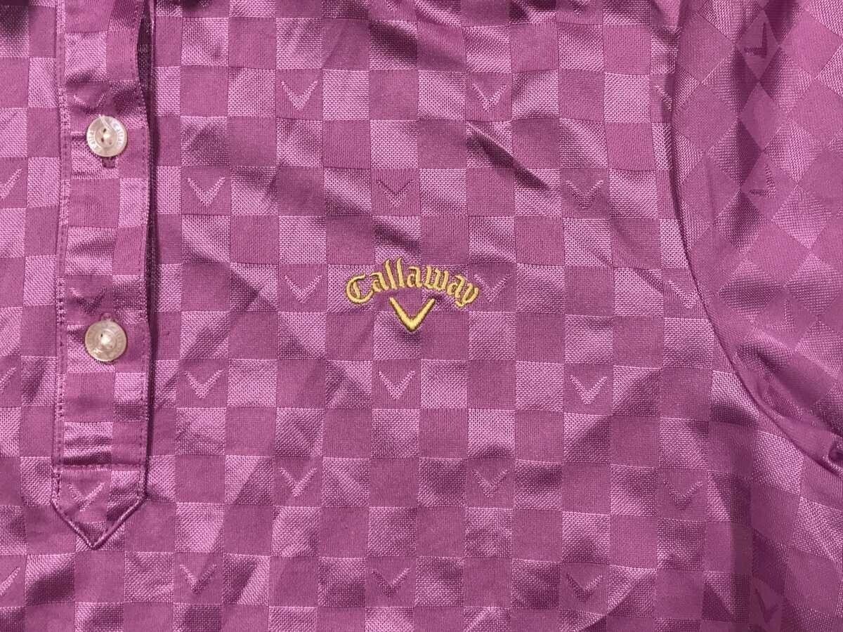 キャロウェイ Callaway レトロ トラッド スポーツ ゴルフ ブロックチェック モノグラム総柄 長袖ポロシャツ レディース L ピンク です。