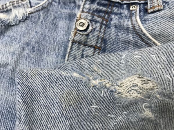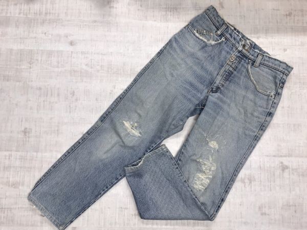[備考/目立つダメージ]:ウエストボタン破損 すそスレ破れ 所々黄ばみシミ