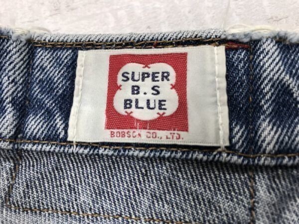 SUPER BS BLUE ボブソン BOBSON アメカジ レトロ オールド ダメージ加工 テーパード ブルーデニム パンツ ジーンズ メンズ ラバーパッチ 青 です。
