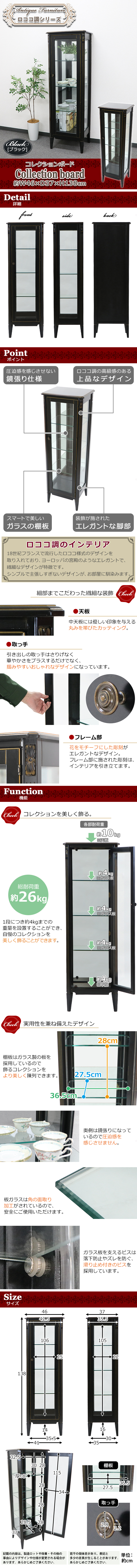 | 商品名 | 送料無料 ロココ調 コレクションボード ブラック 約W46×約D37×約H138(cm) コレクション ショーケース ガラスケース 陳列棚 ガラス板 ガラス ロココ アンティーク クラシック レトロ ヨーロピアン エレガント インテリア 家具 リビング おしゃれ 黒 rococof117bk |
