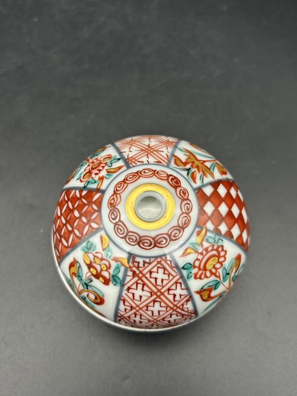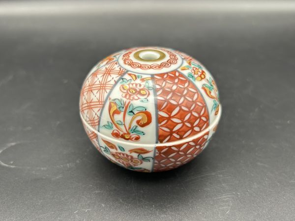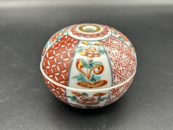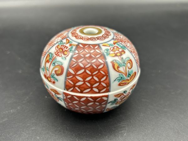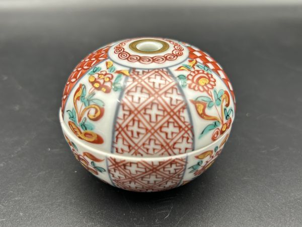 【Y10-9-1】未使用保管品 香合 在銘 赤絵 茶道具 旧家整理品