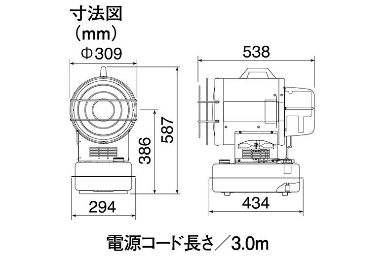 定格電圧及び消費電力(50/60Hz):AC100V 点火時70/60W 燃焼時78/77W