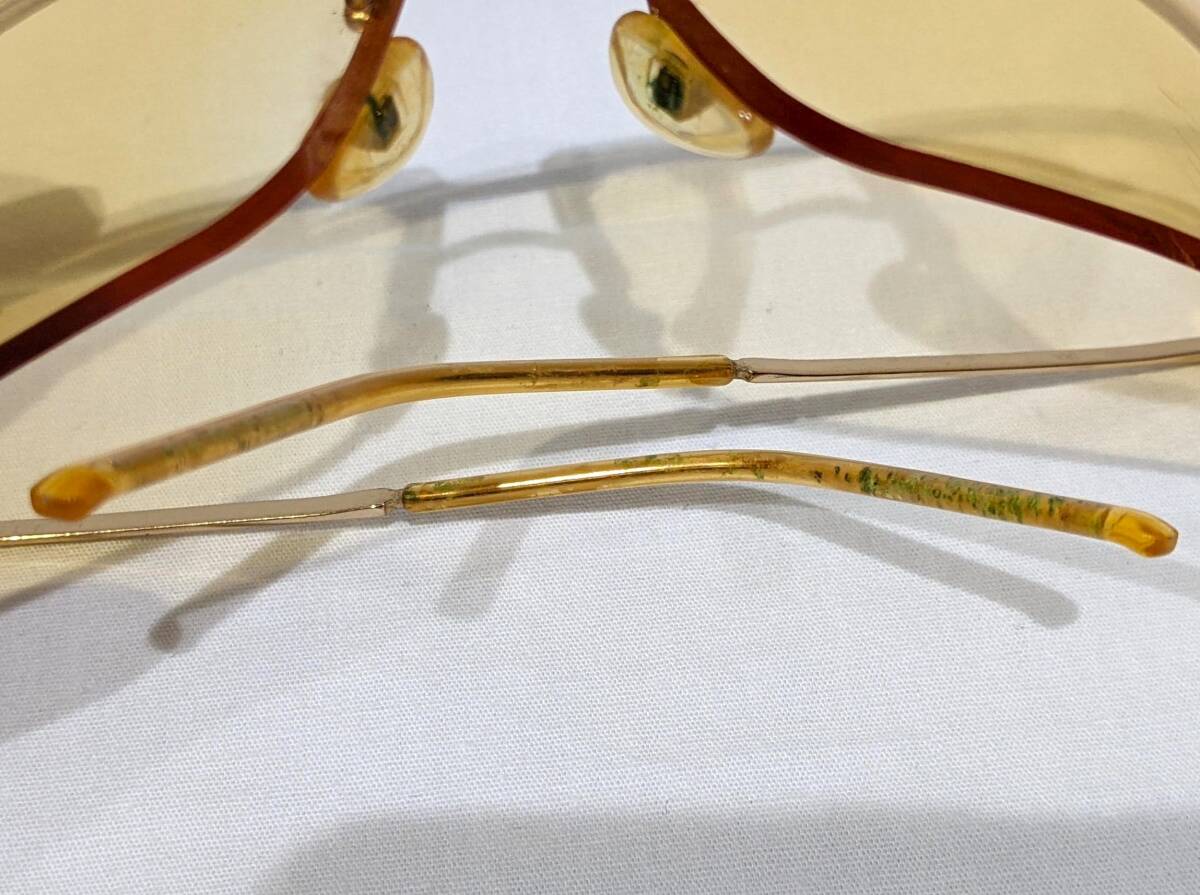 テンプル、レンズと金具が触れている部分にサビや緑青有り。