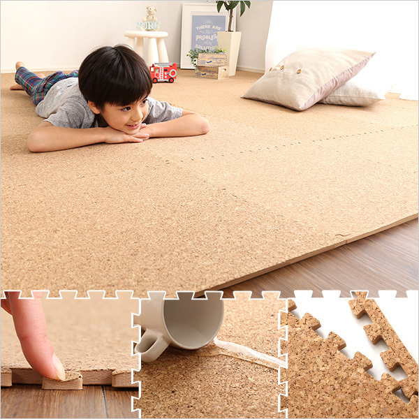 【ポイント】 大粒の天然コルクを使用したジョイントコルクマット64枚タイプです。 衝撃を吸収するEVA樹脂だから防音効果や保温効果があります。 安心して使える低ホルムアルデヒド商品、水洗いできるから、汚れても安心♪ レイアウトしやすいサイドパーツ付きです。 |