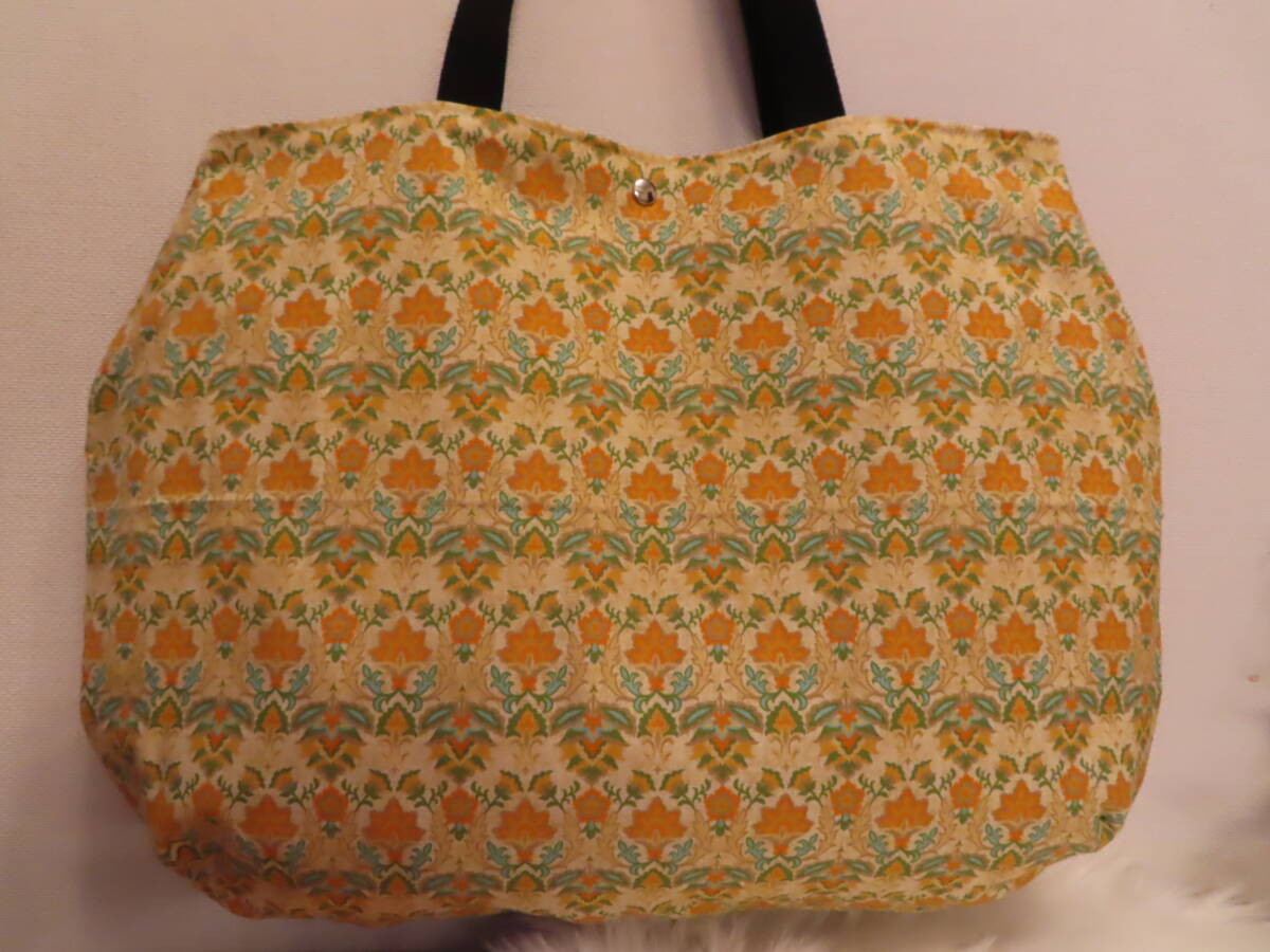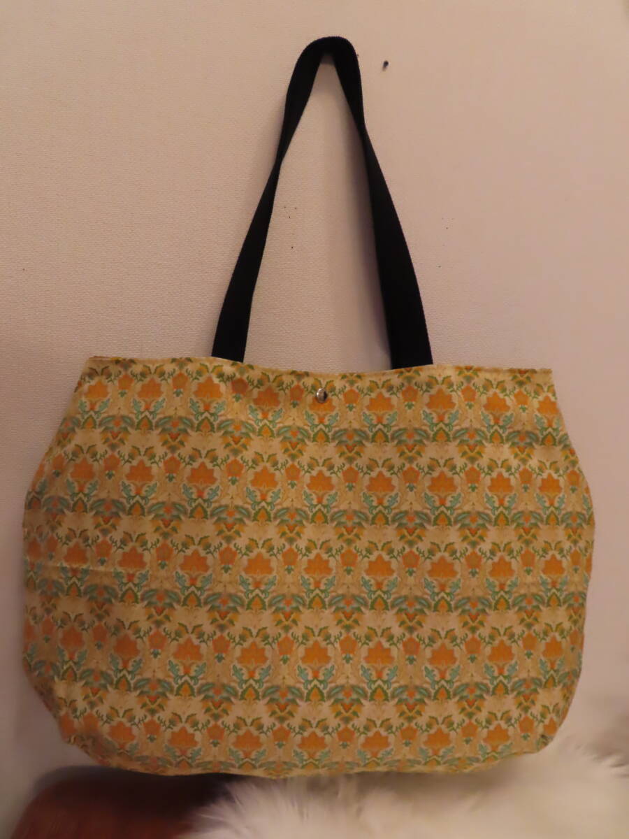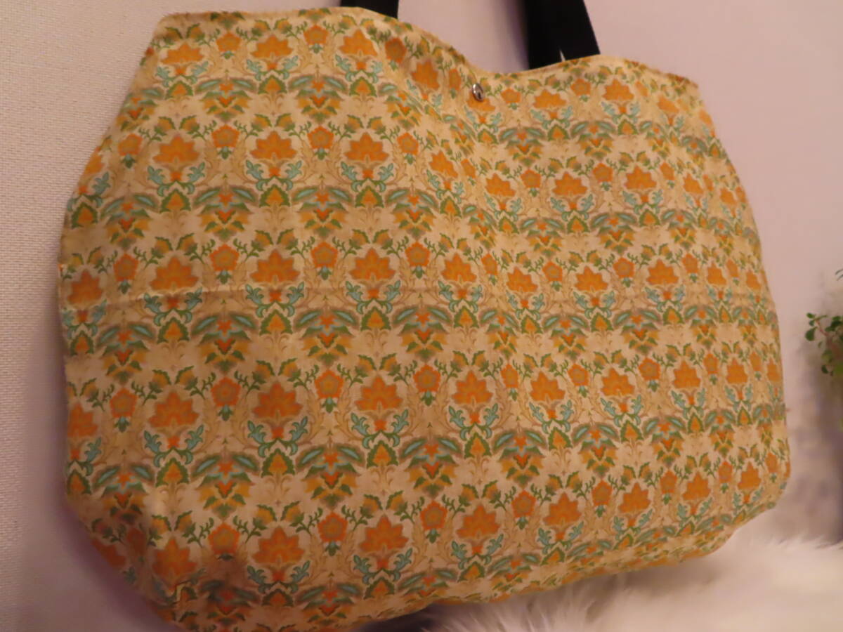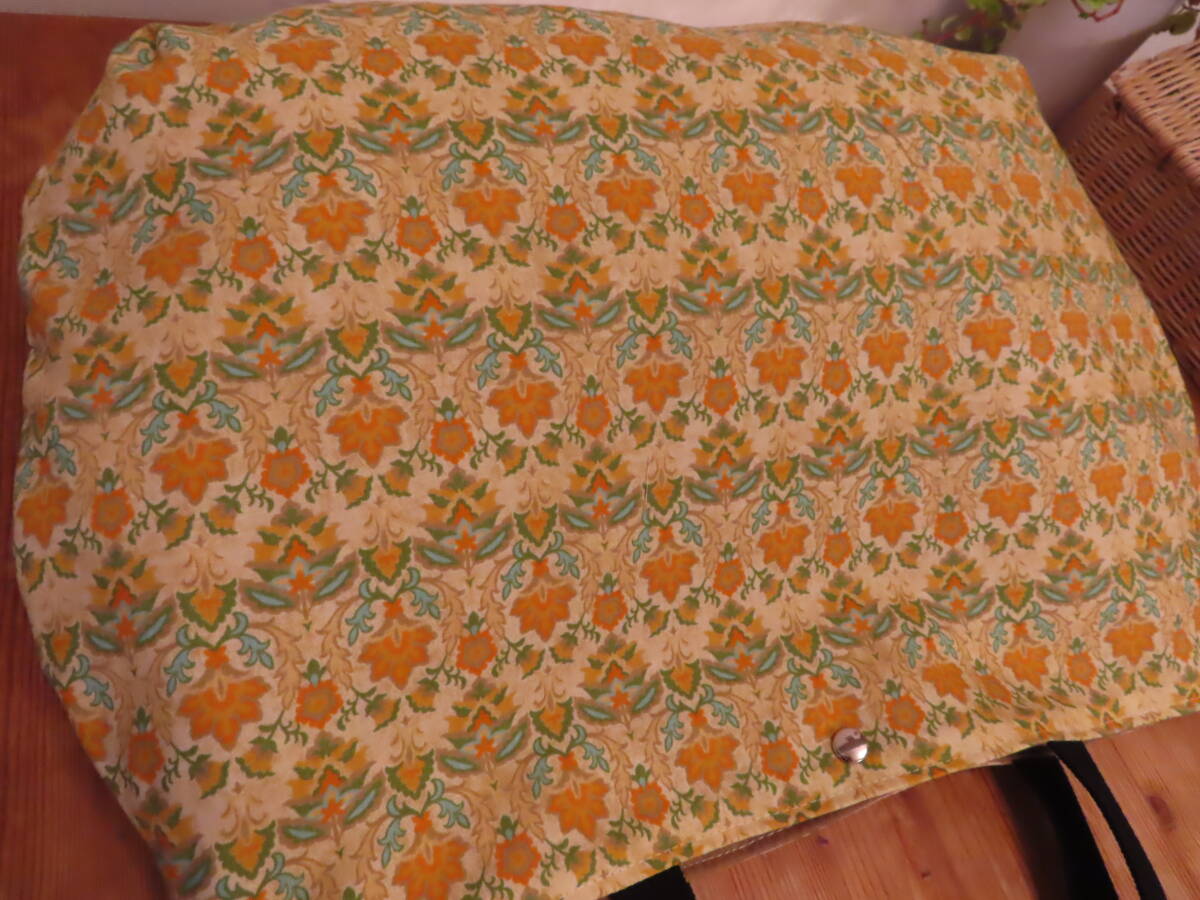 42 ハンドメイド ころんと丸い BIG肩掛けトートバッグ ダマスク模様 マスタードブラウン 柄 プリント