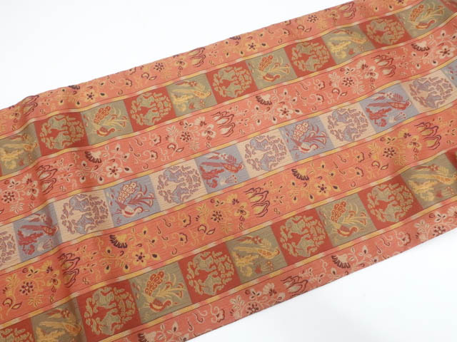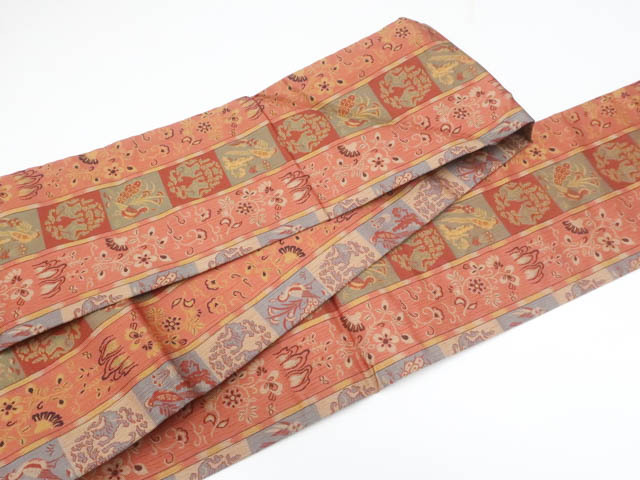 《京都一輝堂》九寸名古屋帯 全通柄 正絹 25b10-2082