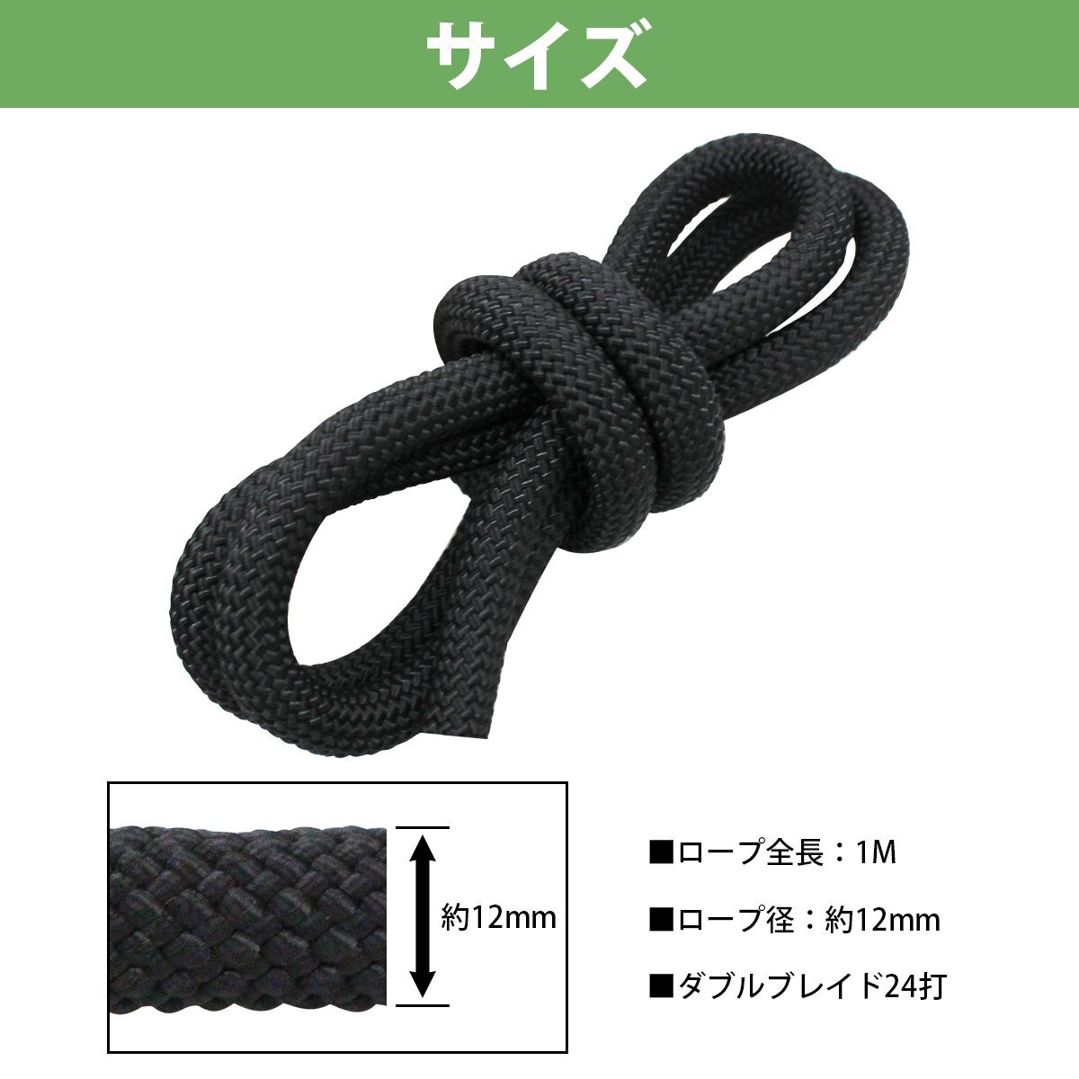 1m ~ 切り売り 24打 12mm 係留ロープ フェンダーロープ ダブルブレイド 黒/ブラック マリンロープ 船 係船 ロープ 12ミリ