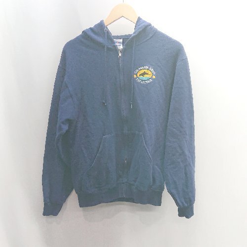 ◇ ⊇ JERZEES ジャージーズ ロゴ刺繍 長袖 パーカー サイズM ネイビー系 メンズ E