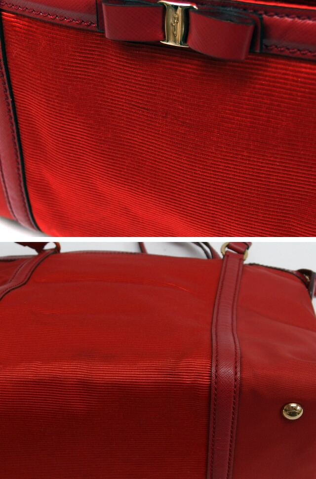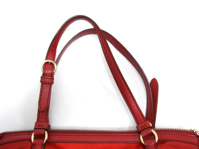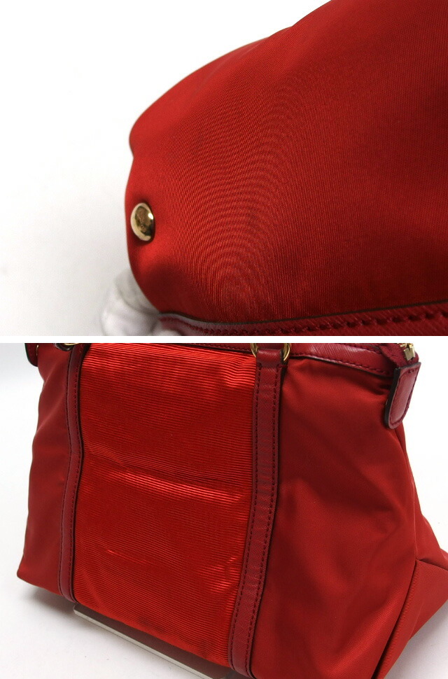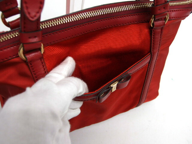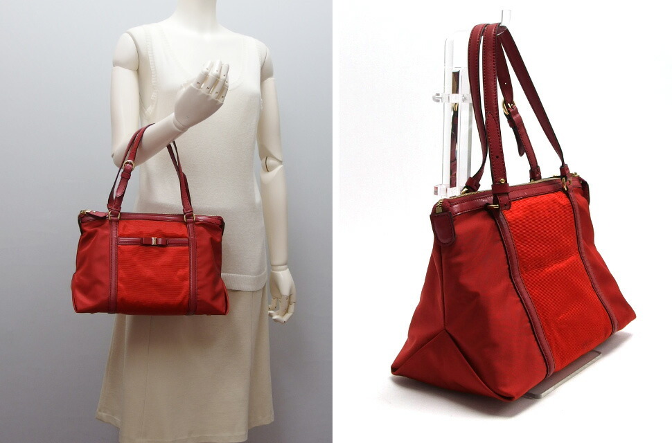 | 商品名 | ヴァラリボン ナイロン トートバッグ ハンドバッグ 型押しレザー キャンバス レッド(赤) ファスナー開閉 ゴールド金具 軽量 肩掛け レディース EE-21 C169 |