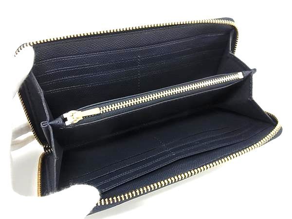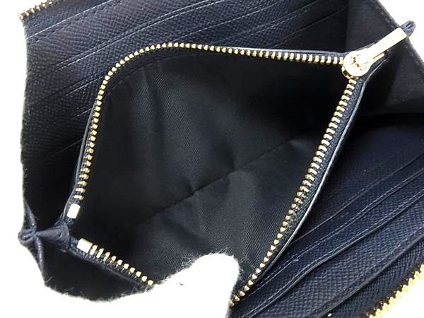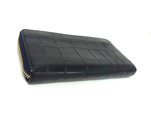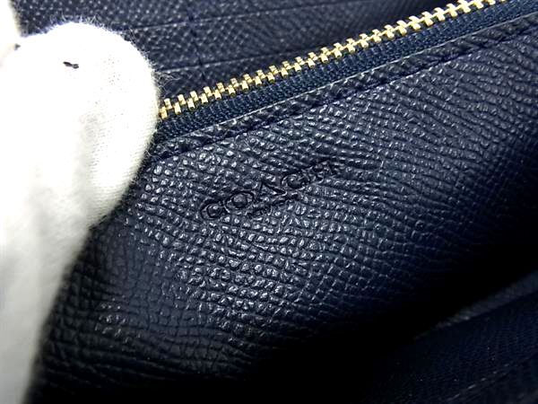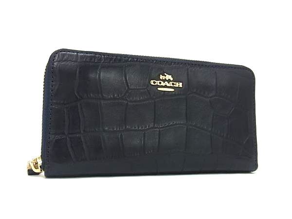 ■美品■ COACH コーチ F54757 クロコダイル型押しレザー ラウンドファスナー 長財布 ウォレット 小銭入れ メンズ ネイビー系 DK9105
