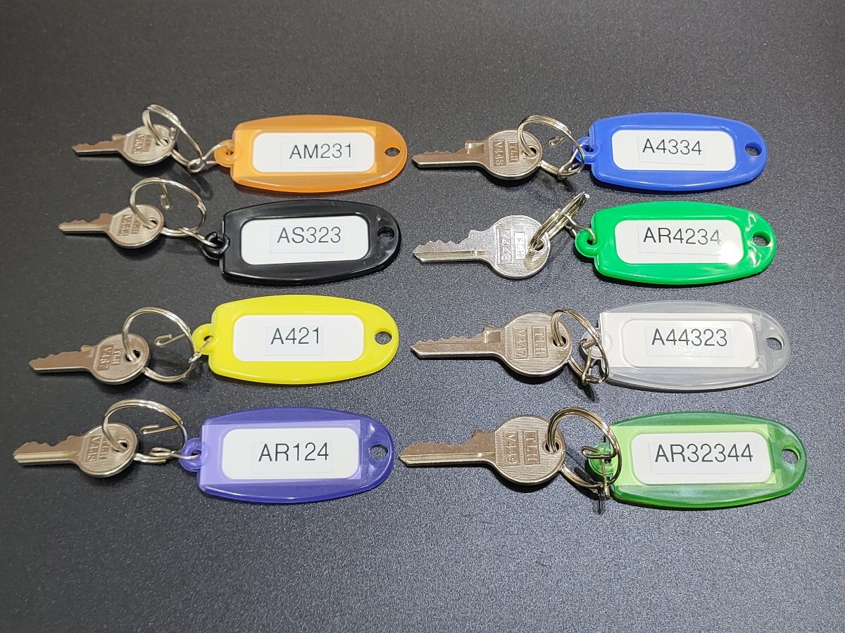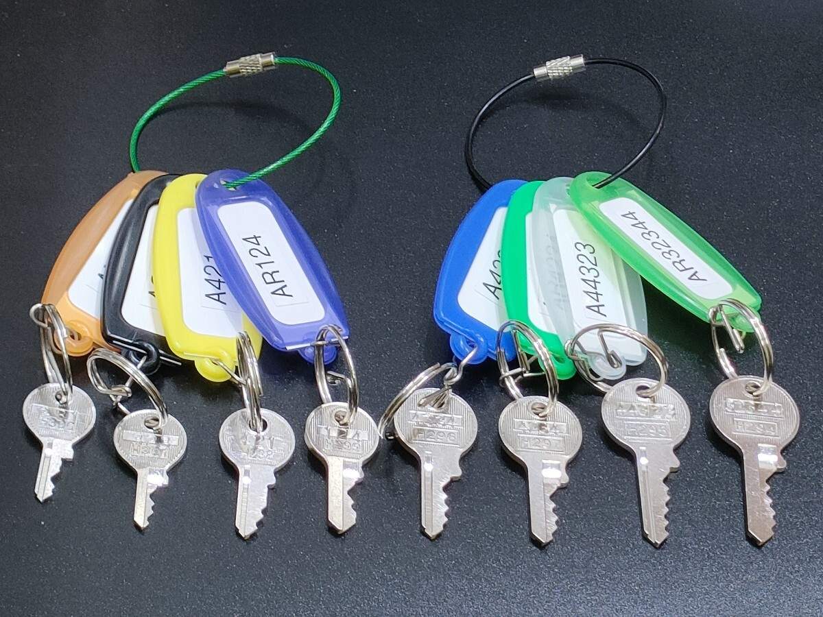 同一キーの合鍵8本、キーNoタグホルダー、ワイヤーリング付き。