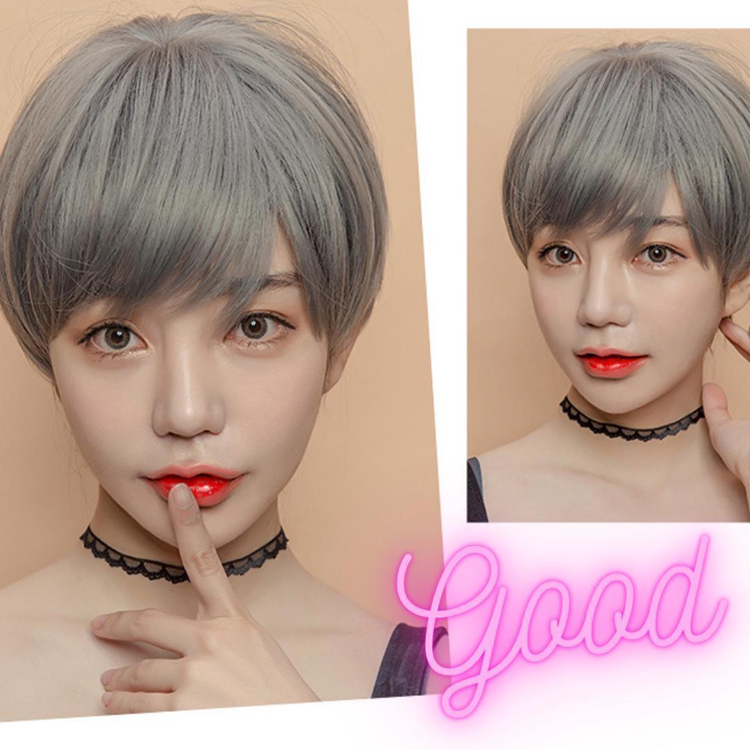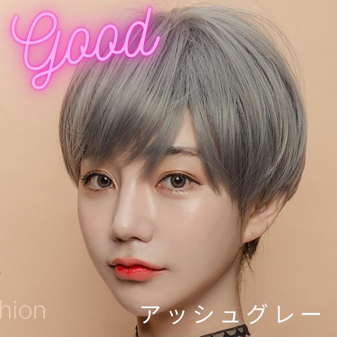 アッシュグレーのショートストレートウィッグは、普段のファッションスタイルを大きく変えてくれる定番スタイル。