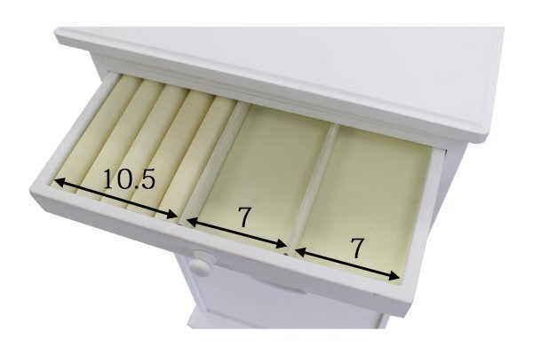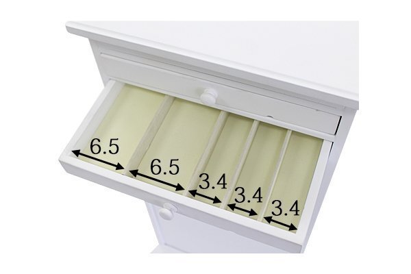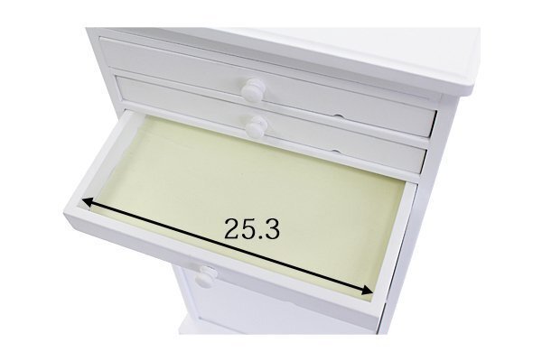 | 商品サイズ | ■サイズ ■本体寸法・・・ 32(幅)x33(奥行き)x68(高さ)(cm) ■(引き出し内寸・上から3段目)・・・W25.3xD13xH2.1(cm) |