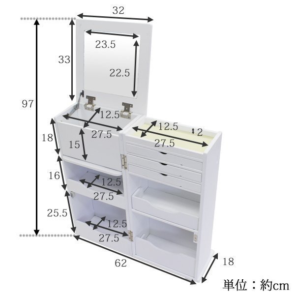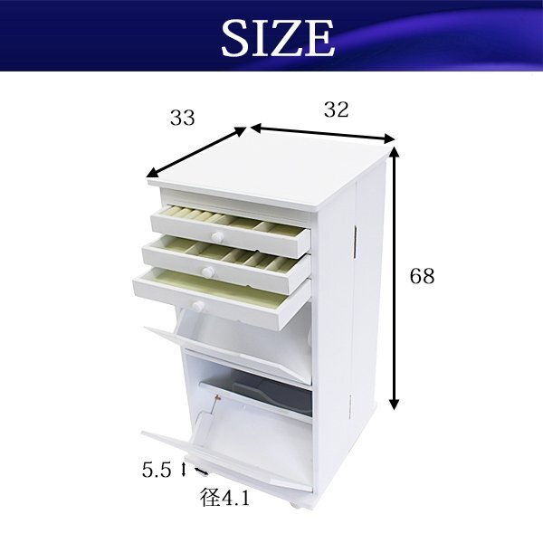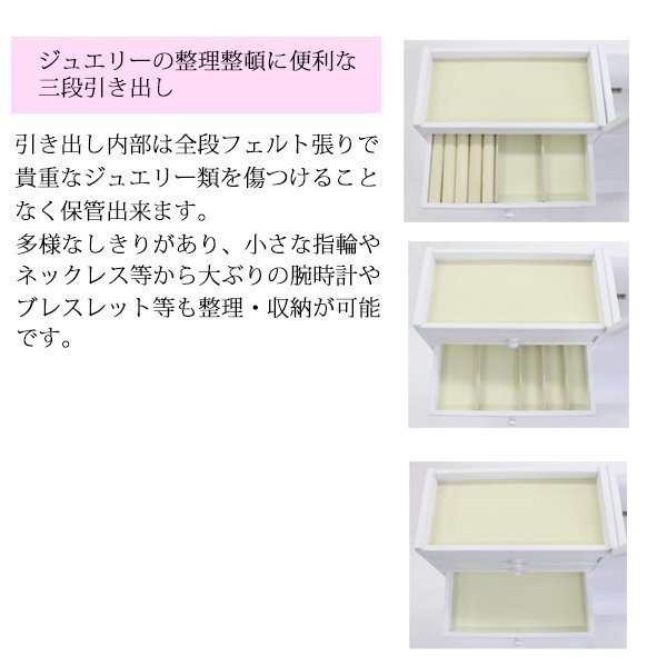 | 商品名 | 送料無料■新品■ジュエリーケース 鏡付き ジュエリーボックス 大容量 アクセサリー収納 三段引き出し付き 32cm幅 33cm奥行 68cm高さ キャスター付き 白 ホワイト■08081wh |
