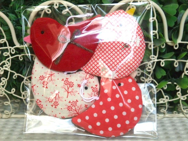 | 説明 | 送料普通郵便110円 サイズ約6センチのキュートな小鳥です☆ 4個セットです♪ 素材は綿100%です。 丁寧に製作致しました。 小さなかわいい小鳥のオーナメント色々な場所に飾ってくださいね♪ 他にも沢山出品しております。是非見てくださいね☆ クリック ↓ ↓ ↓ |