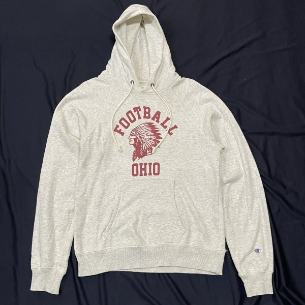 Champion カレッジチーム シミコミプリント パーカーチャンピオン  フーディー フーデッド スウェット トレーナー YL2813 OHIO FOOTBALL インディアンロゴ 裏起毛 ソフトでしっかりした上質素材