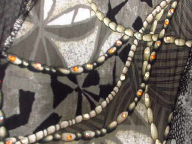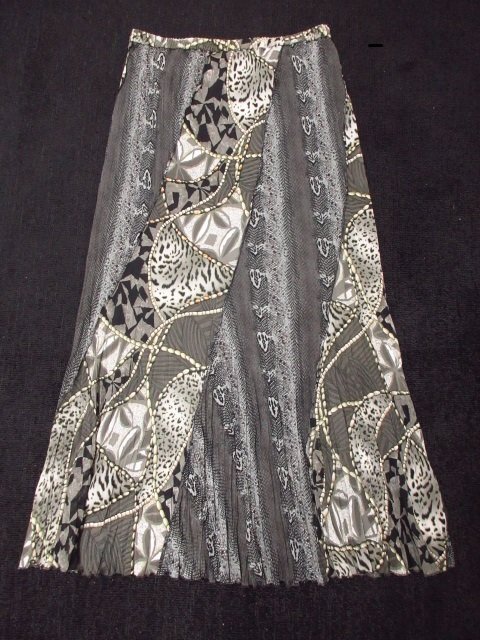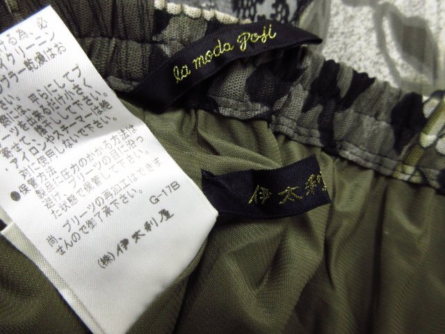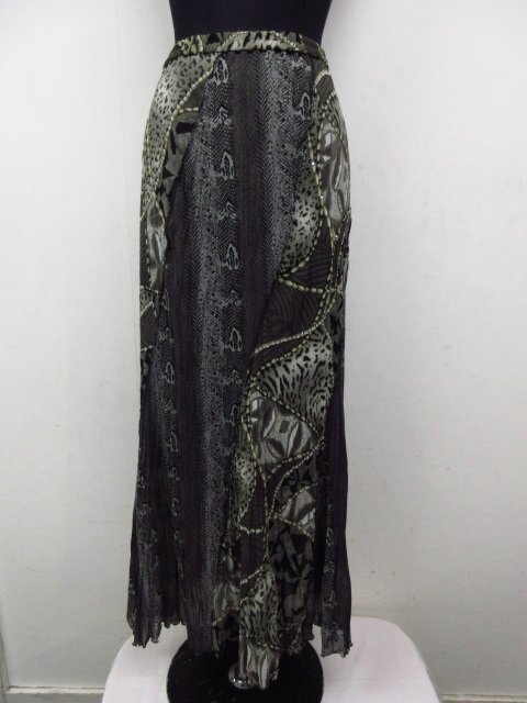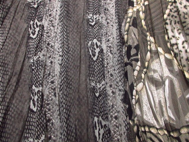 h5243 伊太利屋 ロングスカート 日本製 13サイズ グレー ヘビ柄 レオパード シースルー ラインストーン ウエストゴム