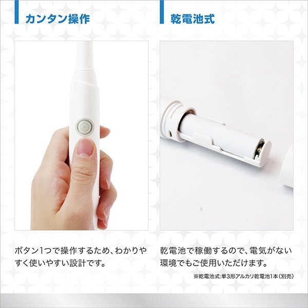 電動歯ブラシ 振動 17000回転/分 音波ブラシ 替えブラシ2本 IPX7 防水 電池式 携帯 ハブラシ 歯磨き 歯 健康 送料無料 3M◇ 歯ブラシMEH