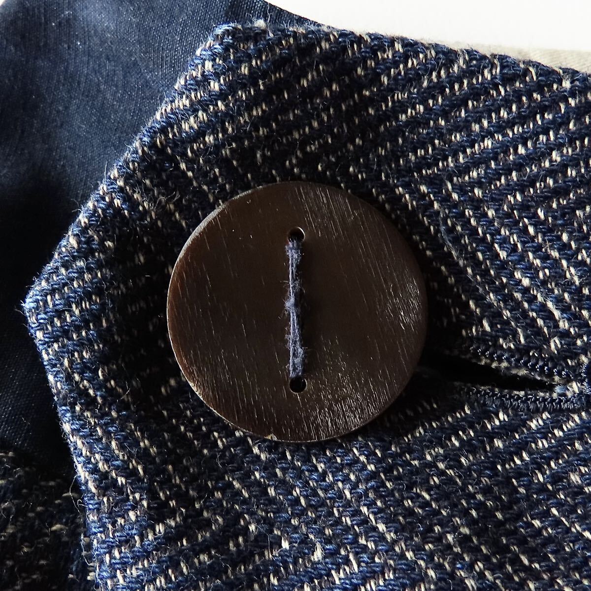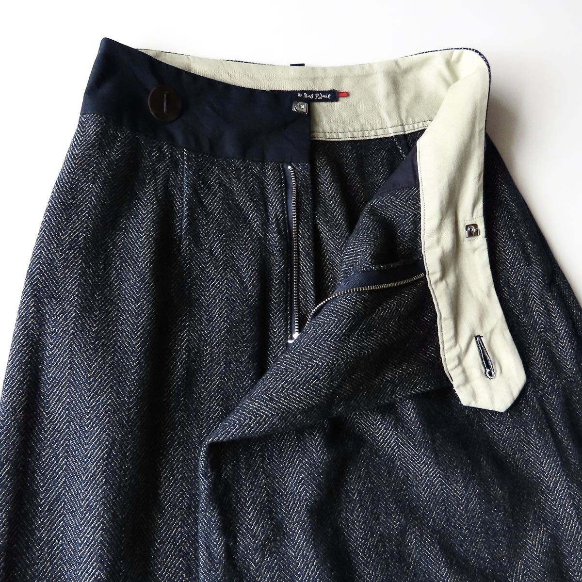 藍染めの性質上ウエスト内側に小さな色移りがございますが、表地は綺麗で目立つキズや汚れはございません。