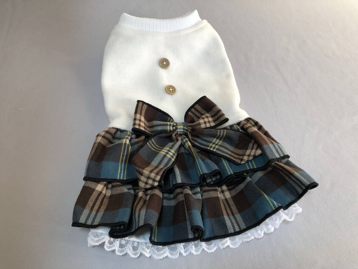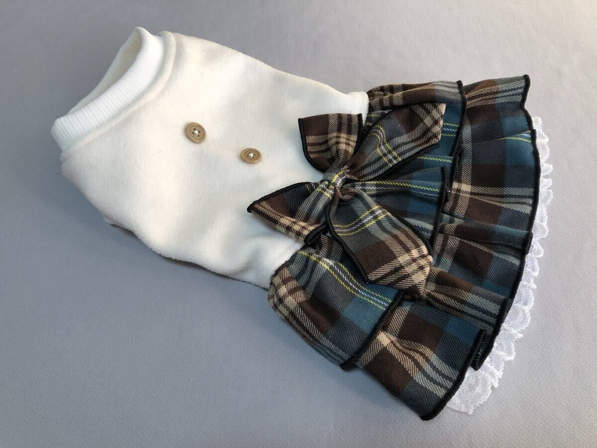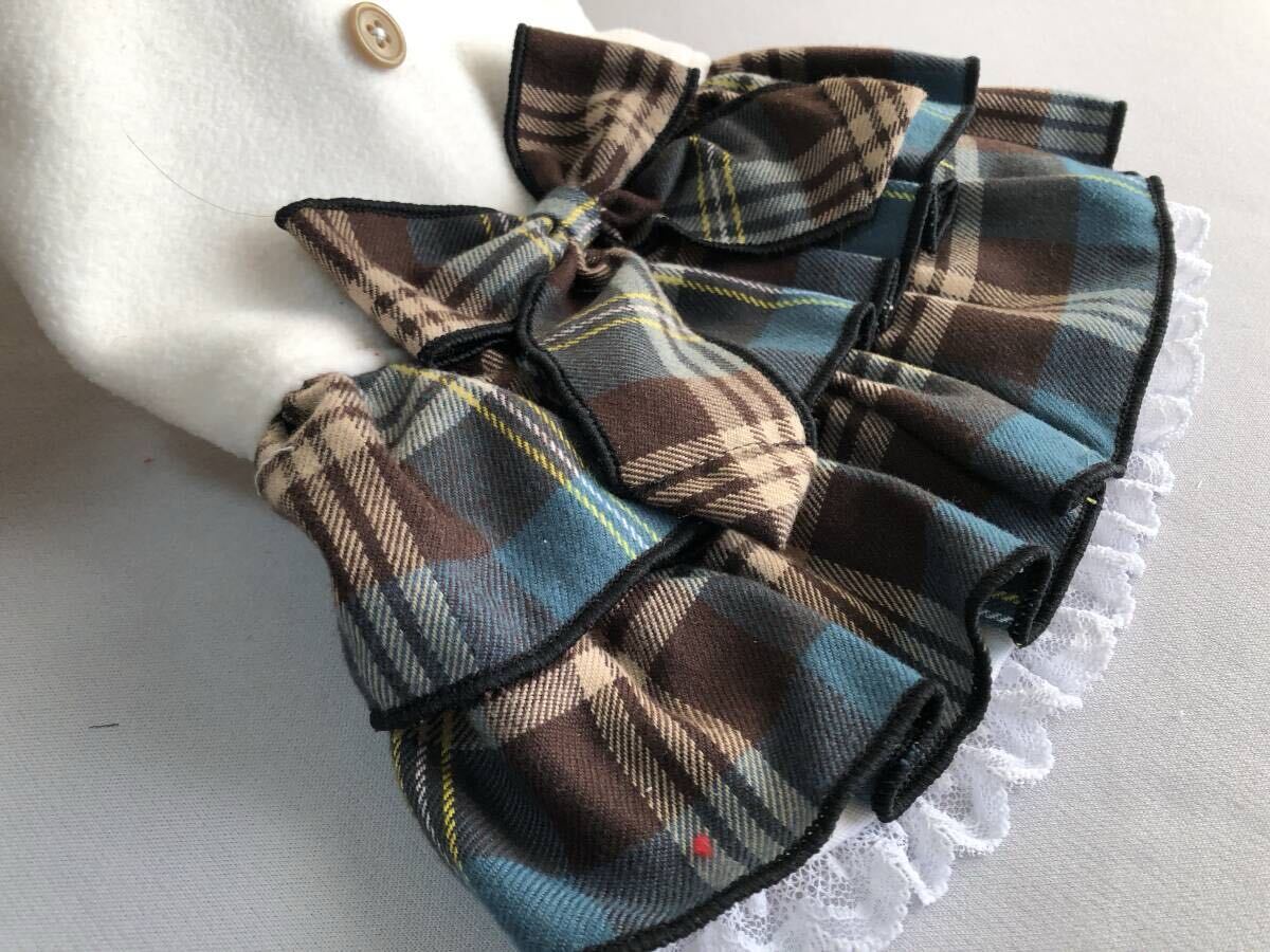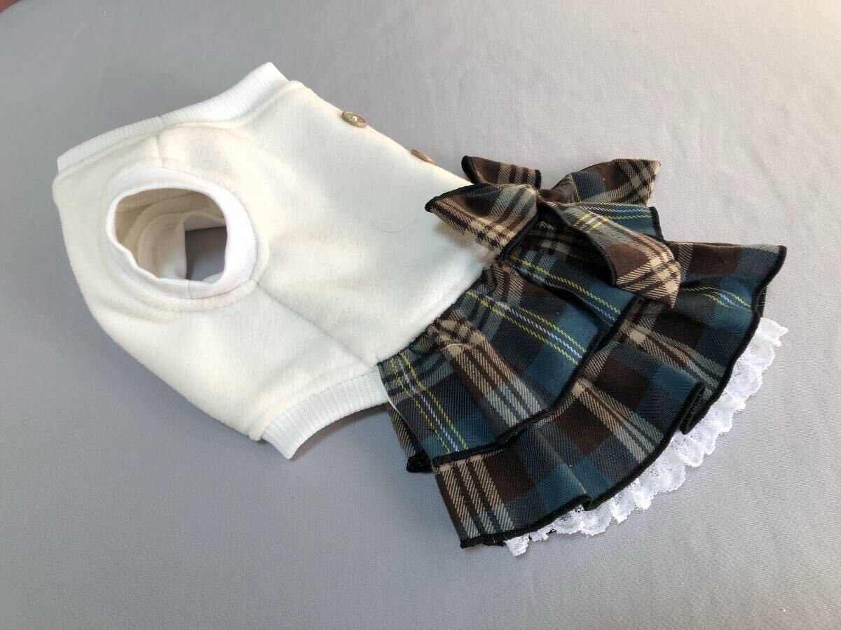 ◇胴38◇フリース◇グリーン系チェック柄フリルスカートワンピ